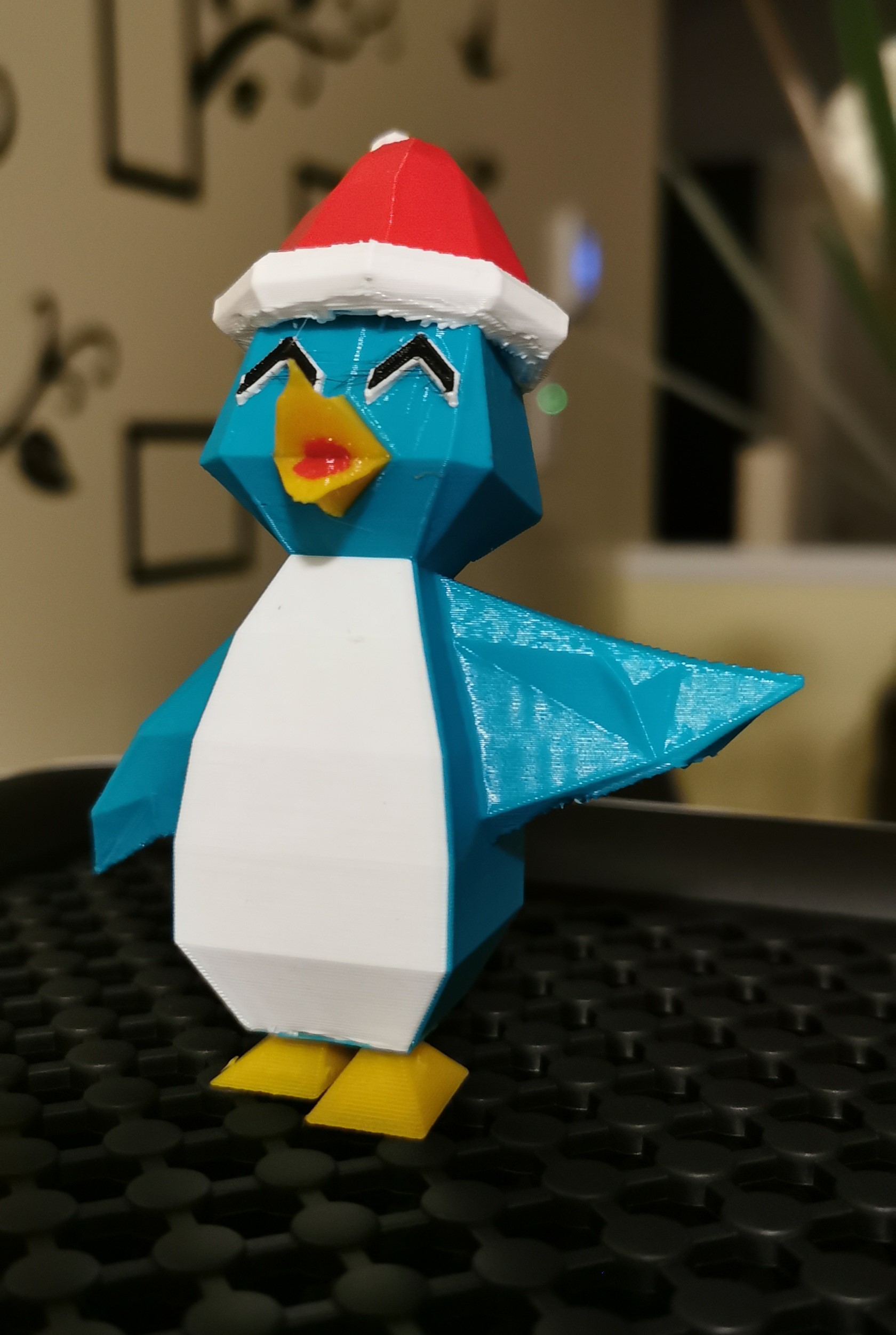 Chú chim cánh cụt Giáng sinh happy dễ thương với phong cách low-polygon và chiếc mũ ông già Noel! Bé trông cực kỳ đáng yêu khi in nhiều màu, đặc biệt là khi làm móc khóa.