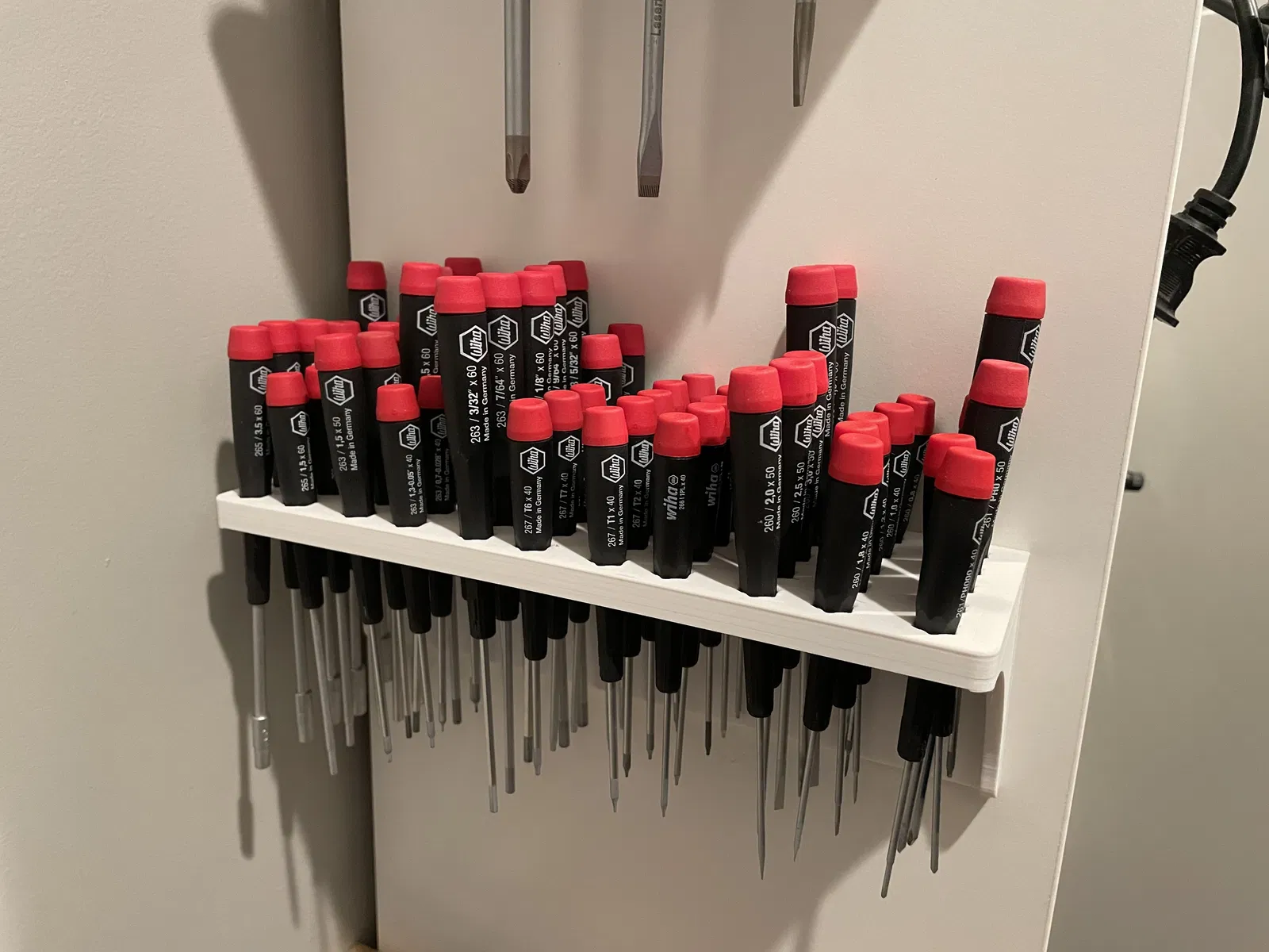 Thỏa thuận với quỷ tôi đã thực hiện là tạo ra cái giá đựng đồ này với 55 lỗ lục giác được căn chỉnh để chứa những con tuốc nơ vít Wiha tuyệt vời. Đúng vậy, điều này có nghĩa là nếu bạn có một bộ Master thì bạn ổn, nhưng cái tuốc nơ vít lục giác metric thứ 11 sẽ phá vỡ quy luật và bạn sẽ có chỗ cho cái máy gắp chip thời 1980s của mình. Nếu bạn thêm các đầu pentalobes, bạn sẽ phải đưa ra lựa chọn khó khăn. Tôi đã hy sinh cái kẹp chip và cái tuốc nơ vít lục giác đã nói ở trên, và giờ đây có một lưới lục giác Wiha hoàn hảo tuân thủ OCD. Các tuốc nơ vít dự phòng đang xấu hổ ẩn mình trong ngăn kéo cho đến khi tôi có đủ liệu pháp tâm lý để quyết định phải làm gì với chúng.