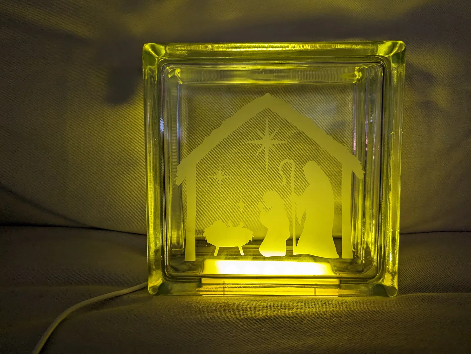 Gần đây, tụi mình có đi một hội chợ thủ công và bà xã mình thấy mấy cái khối thủy tinh trang trí có khắc hoa văn lên đó. Vì mình có cái máy phun cát mini nên mình biết là có thể tự khắc được hoa văn lên mấy khối thủy tinh đó, nhưng mà mình muốn có một cách hay ho để chiếu sáng bên trong mà không cần phải nhét dây đèn nháy hay đèn Giáng Sinh vô.