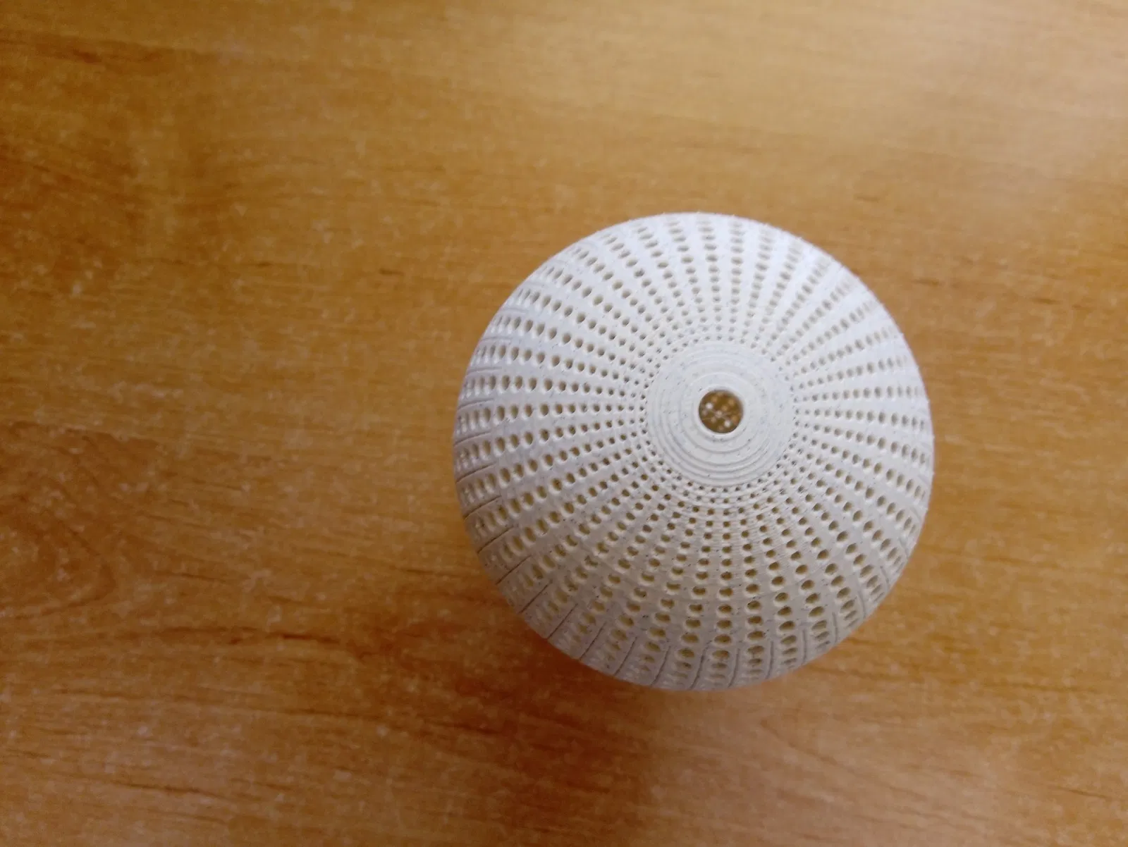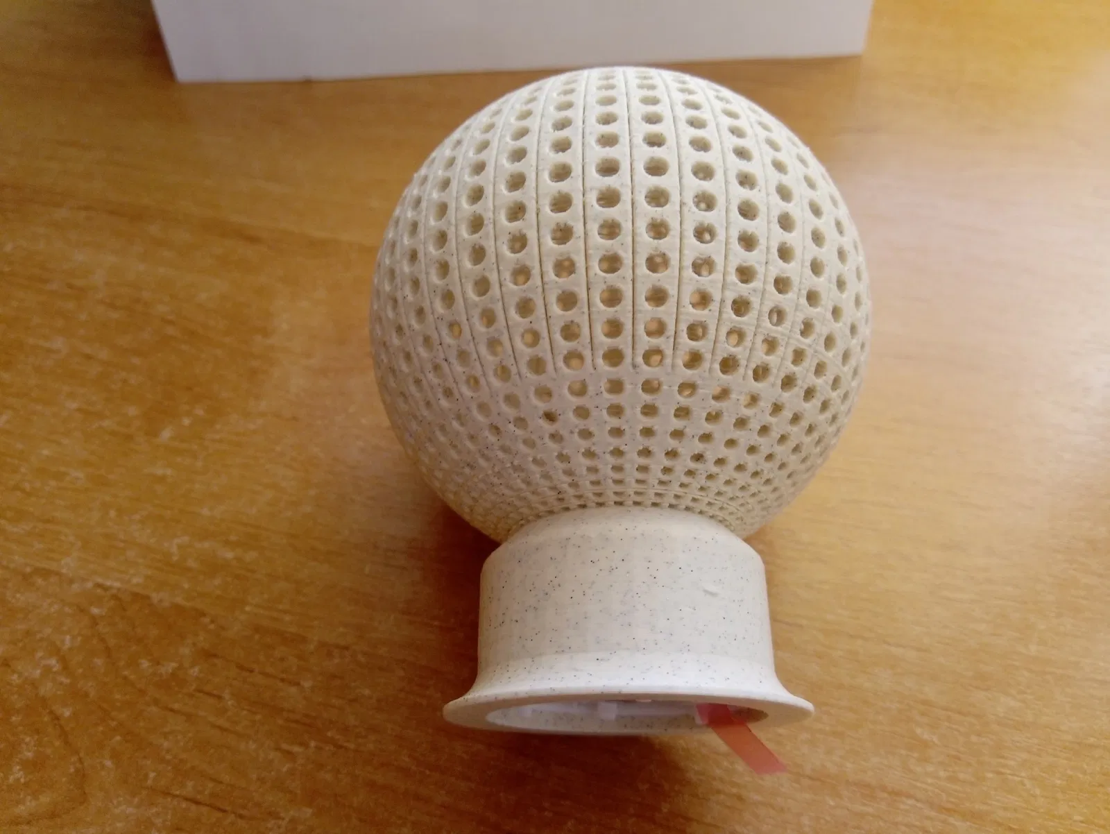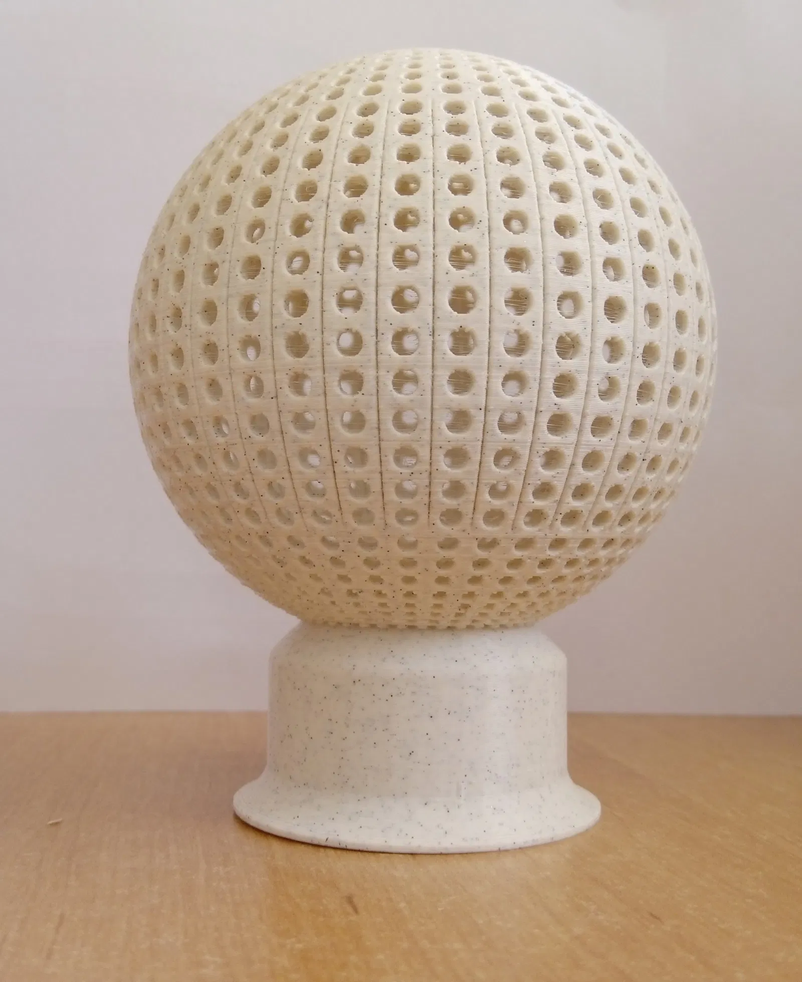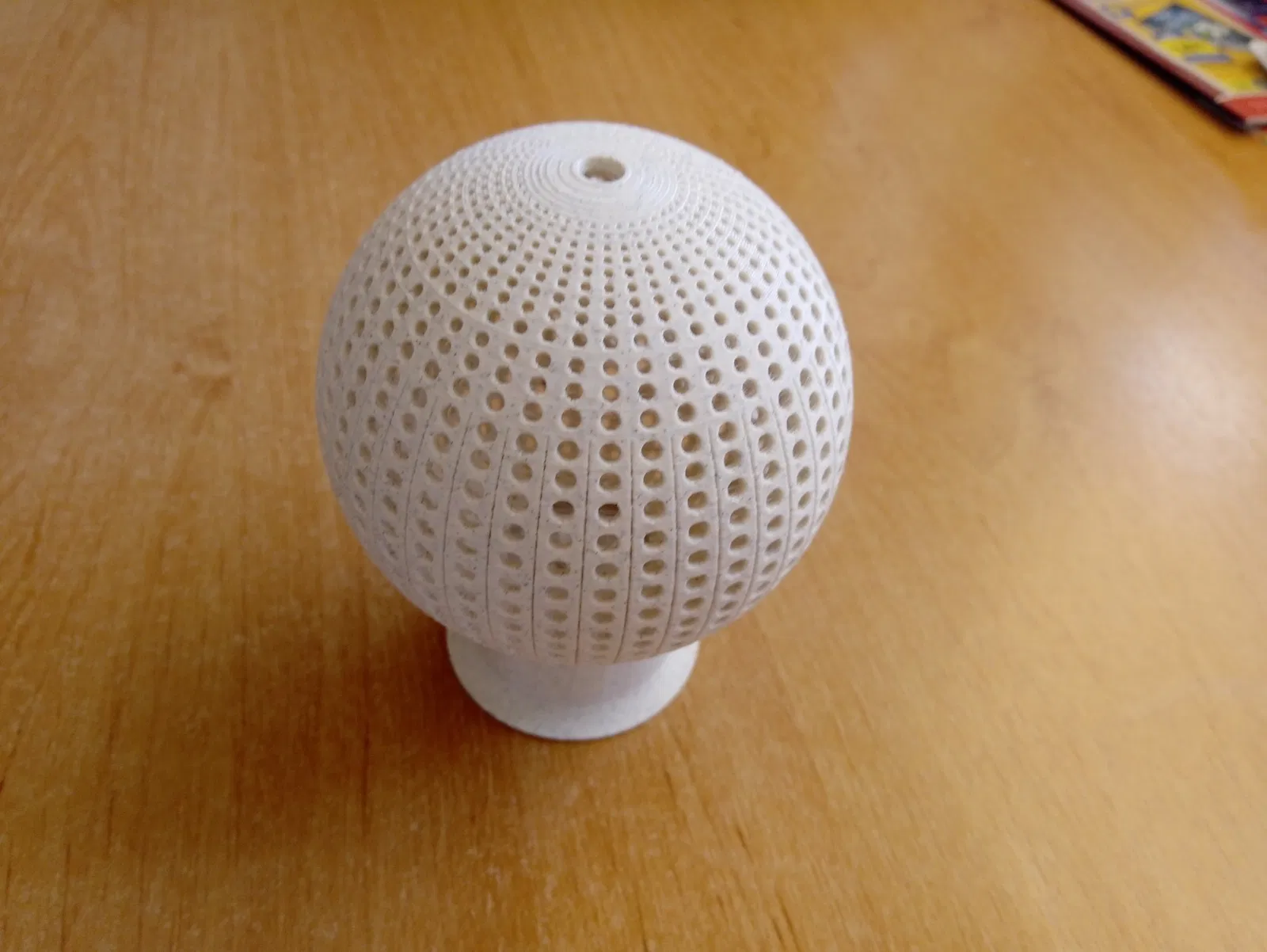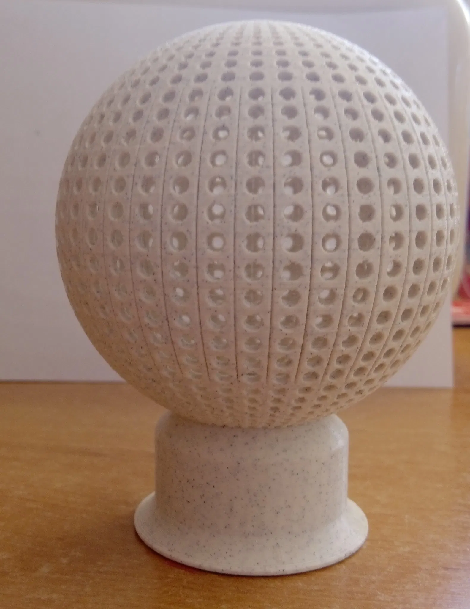 Quả cầu phát sáng có lỗ, khi cho nến trà lạnh vào sẽ phát sáng đẹp, được in từ filament PLA mà không cần hỗ trợ.