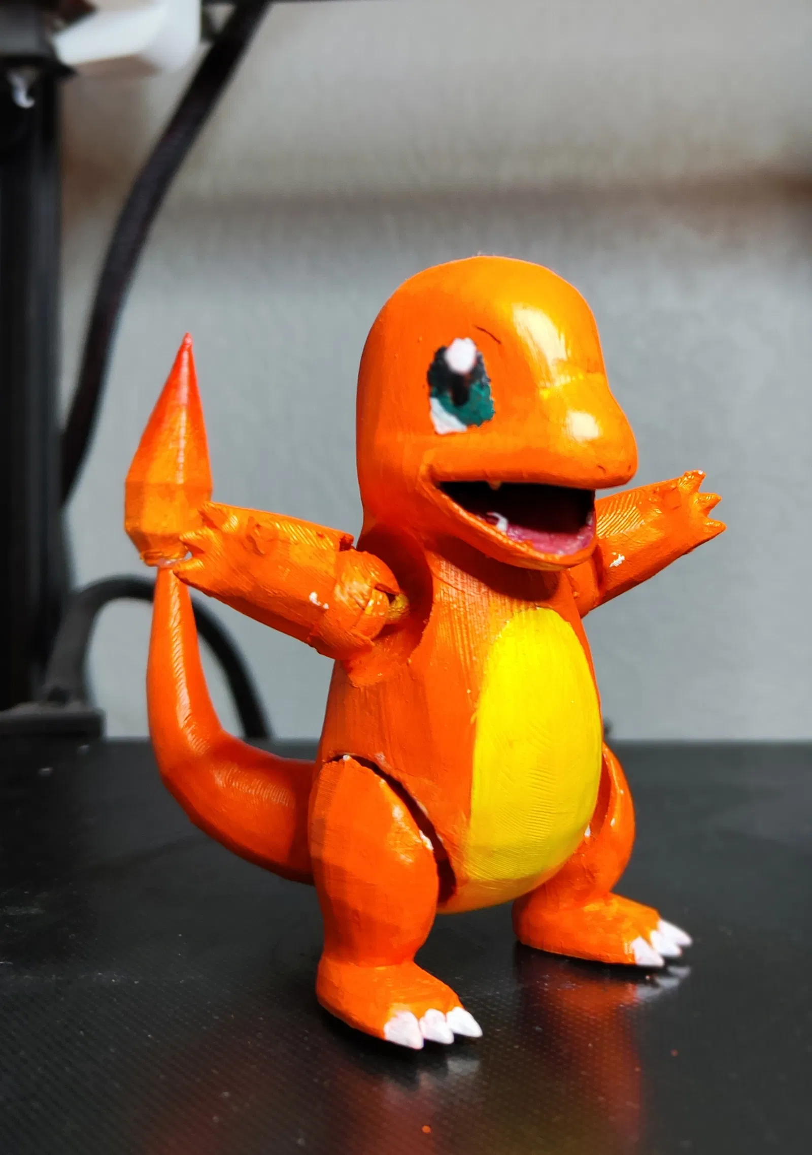 Giới thiệu mô hình Charmander khớp nối 7 bộ phận (chân đế, đuôi, lửa, tay và chân). Đây là bản beta, in thử với PLA, chiều cao lớp đầu 0.2mm, các lớp khác 0.15mm, độ dày ruột 15% Gyroid.