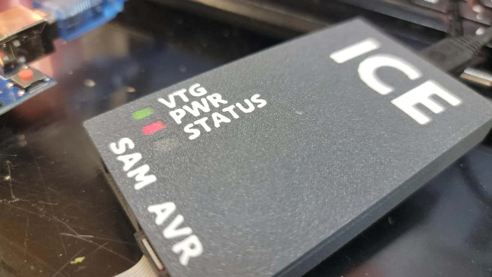 Sau khi tiết kiệm được chút tiền mua phiên bản mạch PCB trần của Atmel ICE, hãy bảo vệ nó bằng chiếc vỏ chức năng này. Phiên bản MMU này cho phép làm nắp phẳng hoàn toàn, có cửa sổ cho đèn LED và nhãn chữ trắng.