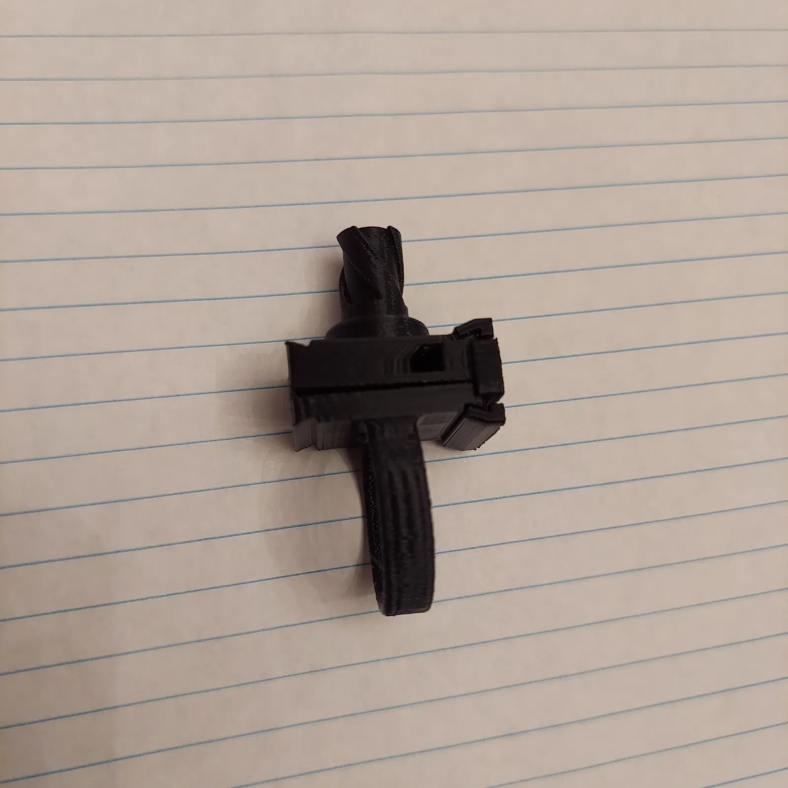 Đặt bộ phận phóng (launcher) lên một ngón tay phù hợp. (ngón nào bạn thấy tiện). Hoặc cầm nó bằng tay không thuận nếu bạn đã in tay cầm.