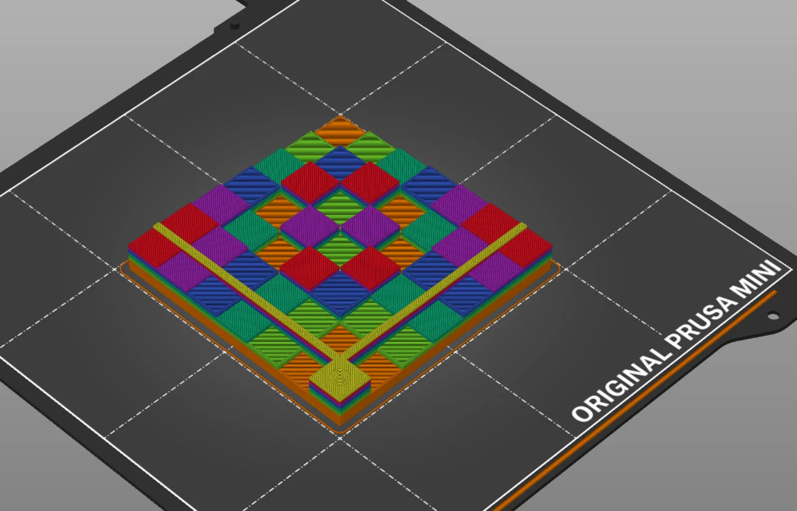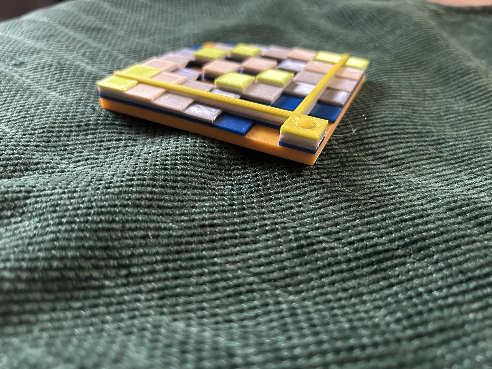 b = 0.8; entry2[0, 0] = Cuboid[{0, 0, 0}, {1, b, 0.7}]; entry2[i, 0] := Cuboid[{i, 0, 0}, {i + 1, b, Sqrt[i]}] entry2[0, i] := Cuboid[{0, i, 0}, {b, i + 1, Sqrt[i]}] borderV = Cuboid[{0, b, 0}, {7, 1, Sqrt[7]}]; borderH = Cuboid[{b, 0, 0}, {1, 7, Sqrt[7]}]; entry2[i, j] := Cuboid[{i, j, 0}, {i + 1, j + 1, Sqrt[Mod[i j, 7]]}] {borderV, borderH, Map[entry2 @@ # &, Tuples[Range[0, 6], 2]]} // Graphics3D // Export["U7.stl", #, "STL"] &