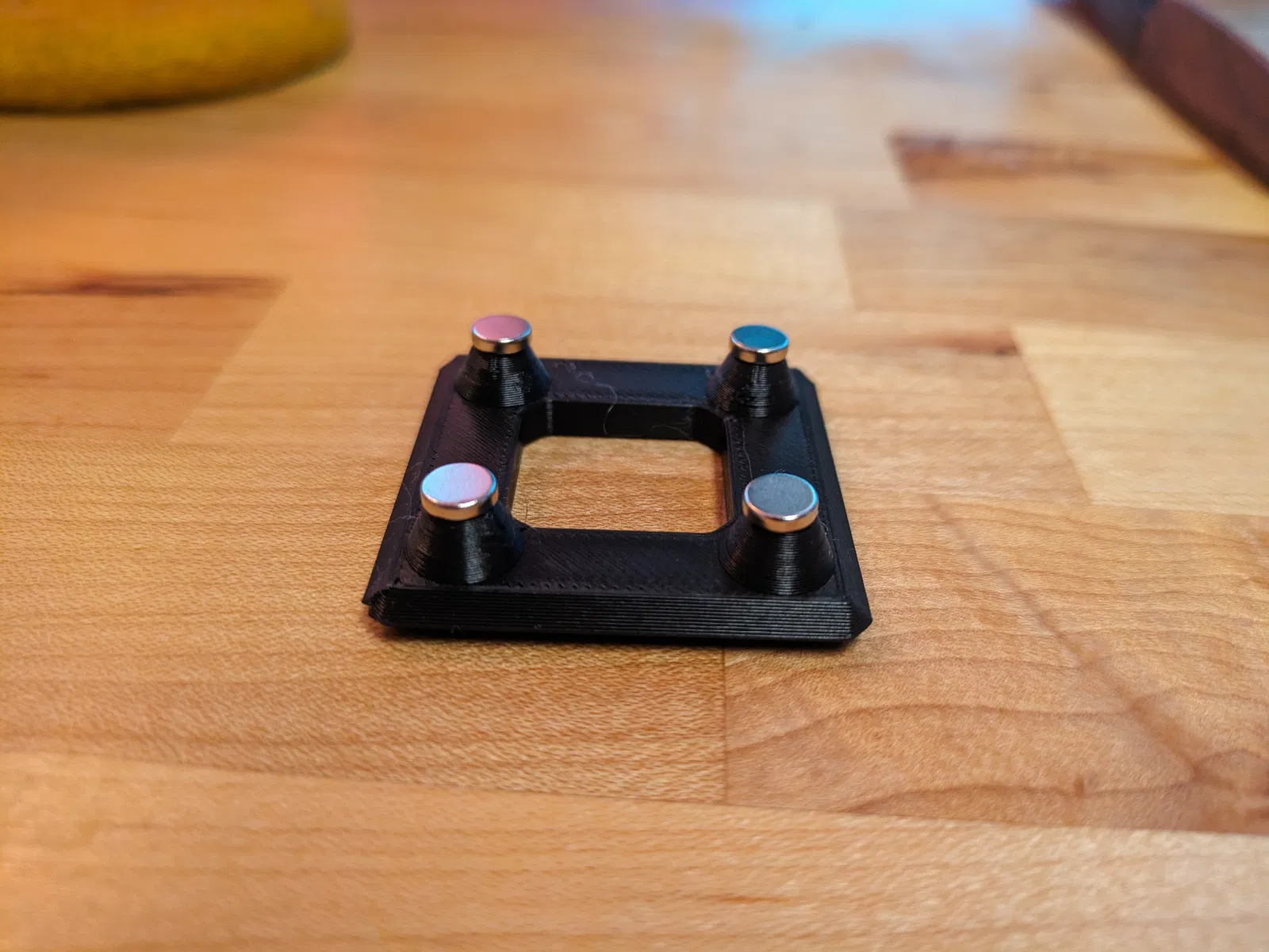 Cái khuôn này là để hỗ trợ nam châm khi bạn gắn chúng vô đế Gridfinity. Phía dưới có lỗ cho nam châm 6x2mm có thể ép chặt. Sau đó, bạn có thể gắn nam châm lên bốn trụ. Tôi đã in nhiều khuôn để có thể dựng đứng cả đế lên trên khuôn và gắn nhiều nam châm cùng lúc.