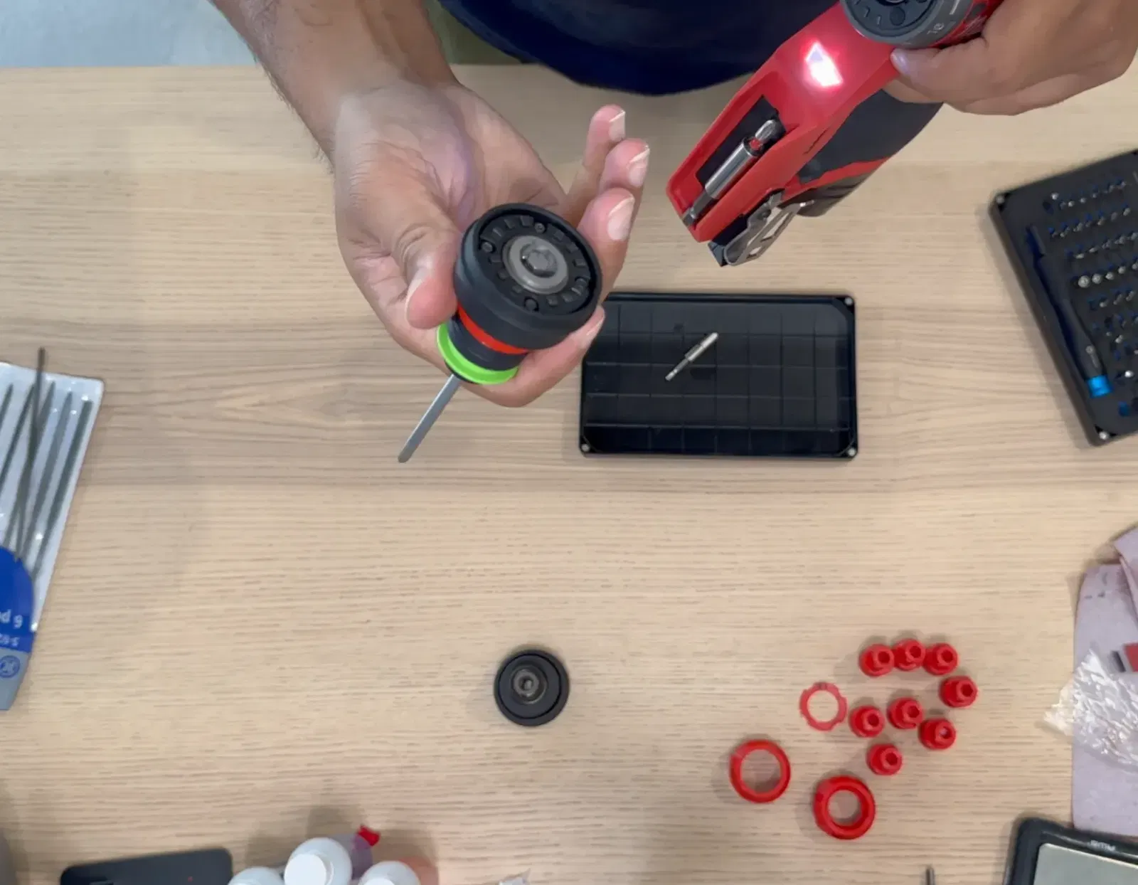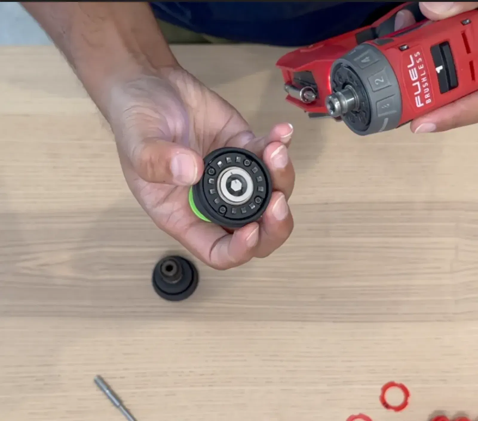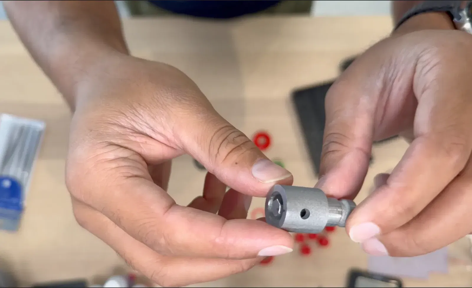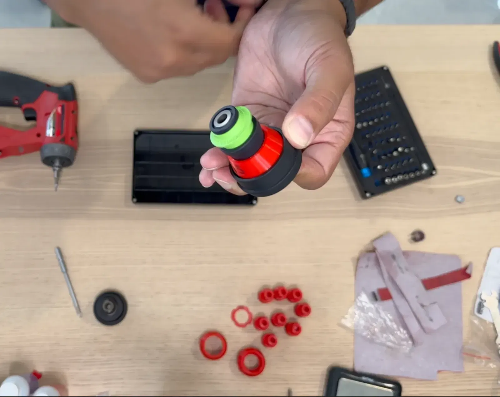 Tui muốn xài mấy cái mũi Centrotec của tui với cái máy Khoan Milwaukee. Tui có làm cái adapter. Có 3 bộ phận cần in nha. Ban đầu tui in hết bằng PETG nhưng cuối cùng thì in bộ phận chính bằng thép không gỉ qua Shapeways ở đây. Còn 2 bộ phận kia (cái vòng đệm và cái vỏ) thì tui nghĩ in bằng nhựa được rồi. Có một lưu ý là bạn phải hy sinh một cái Đầu Kẹp Lục Giác 1/4" của Milwaukee để lấy bộ phận. Tui có đặt mua dư một cái trên eBay để giữ cái kia còn nguyên vẹn. Sau khi in xong bộ phận adapter chính bằng thép không gỉ thì bạn cần dùng dũa/giấy nhám để chỉnh sửa bên trong và bên ngoài cho nó ôm sát vô thân máy khoan nha.