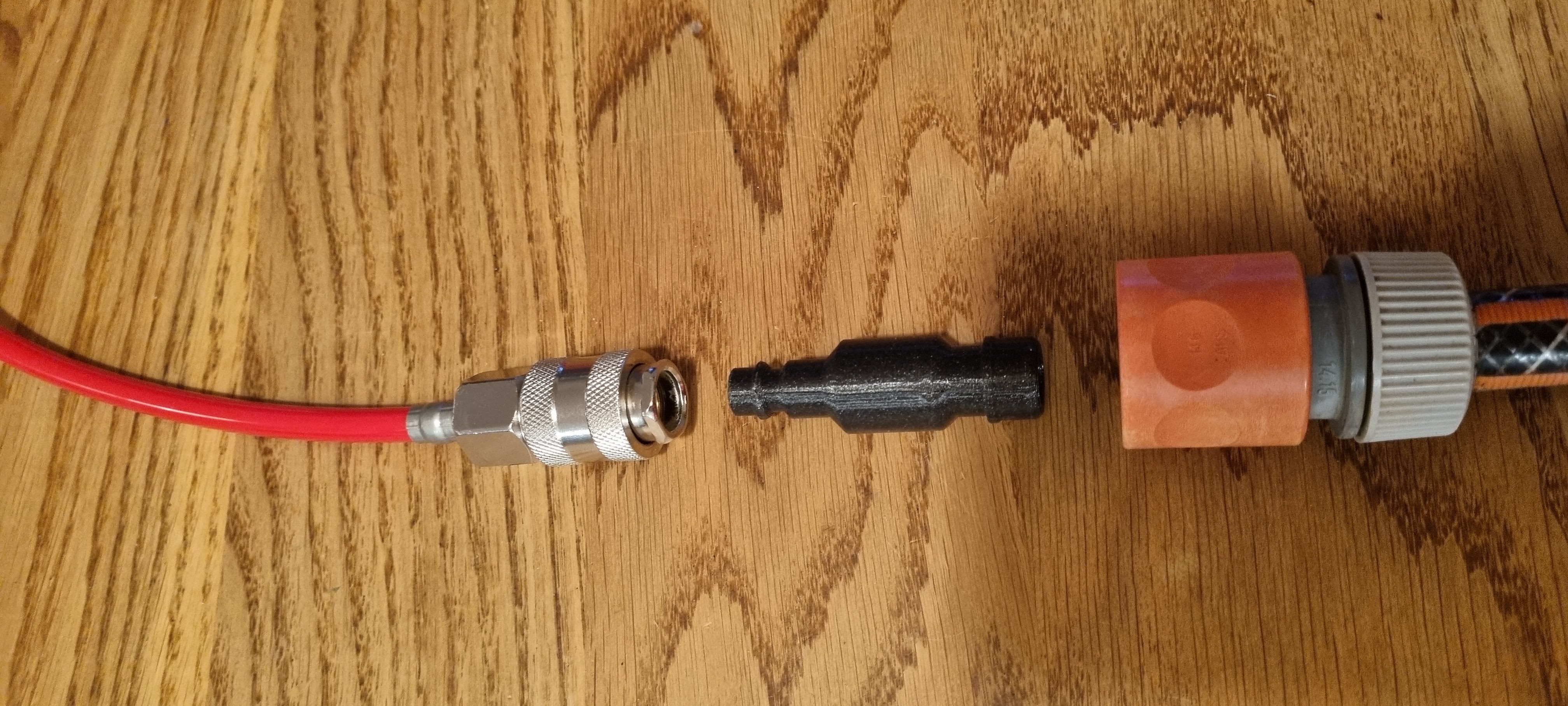Tui cần nối cái máy nén khí với cái ống nước vườn để thổi khô hệ thống tưới nước. Cách nhanh nhất là vẽ phác thảo cái khớp nối rồi in ra xài, xài ngon ơ! Tui không chắc tên gọi chính xác cho cái đầu nối máy nén khí của tui với cái đầu nối ống nước vườn là gì, nên tui sẽ đính kèm hình ảnh, biết đâu có ai chỉ giùm tui được tên gọi của nó ha :)