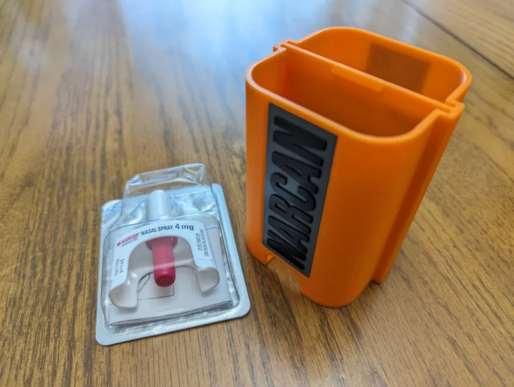 Đây là bản chỉnh sửa giá đỡ Narcan, giờ đây có thể chứa hai ống Naloxone. Nhãn Narcan được thiết kế lại để dễ dàng đổi màu sợi in. Có gợi ý về việc sử dụng giá đỡ và làm phẳng để có bề mặt đẹp hơn.