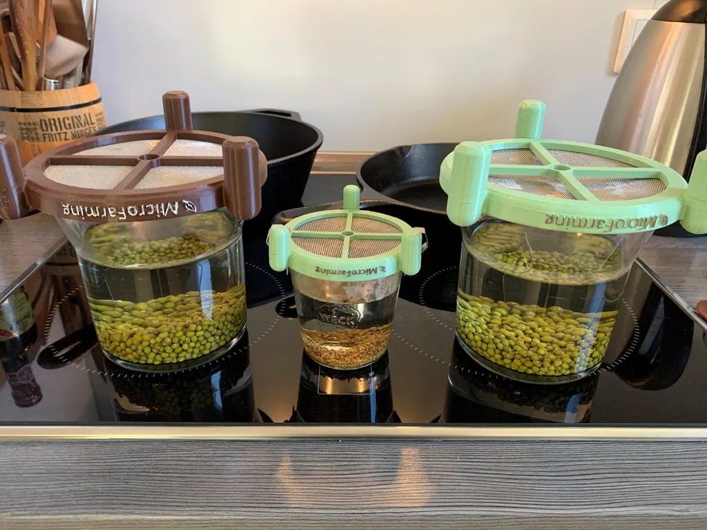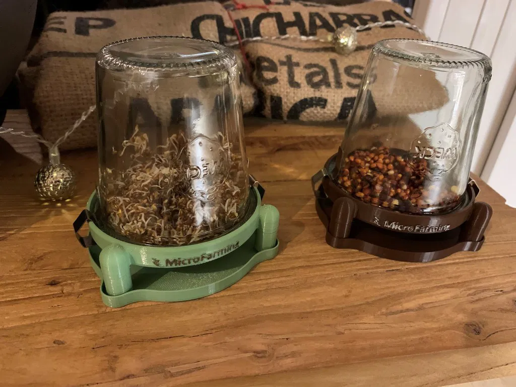 Phiên bản Hũ Weck của máy ươm mầm, thiết kế cho Hũ Thủy Tinh Weck 290ml. Sử dụng kẹp kim loại Weck gốc để giữ cố định. Có thể in bằng PLA hoặc PETG. Hoàn hảo để trồng rau mầm và cây con tại nhà.