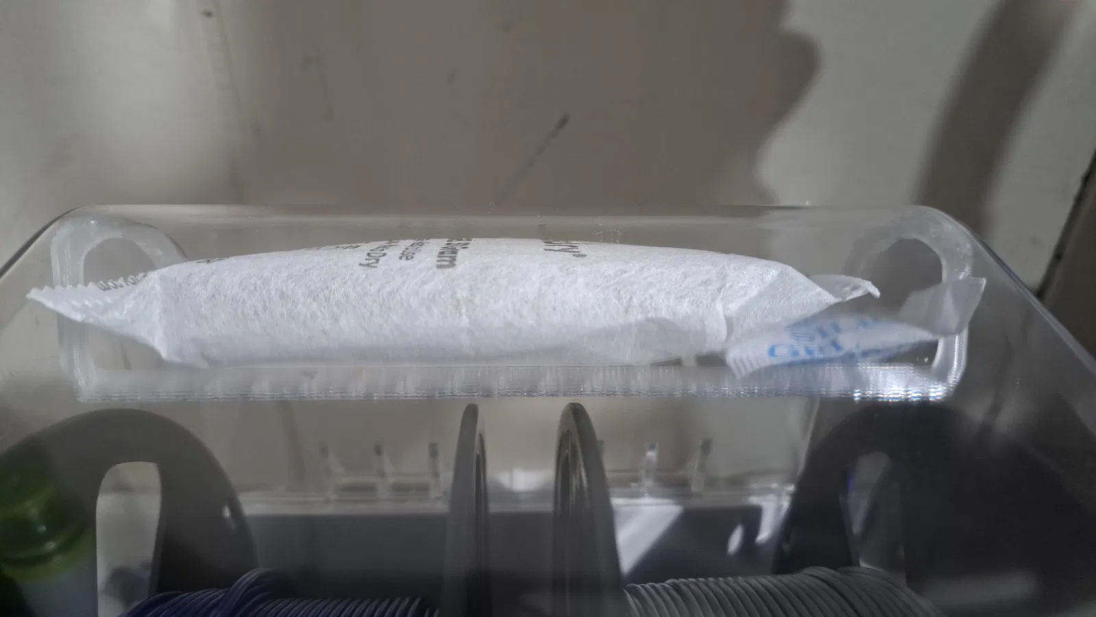 Kệ nhỏ gọn để đựng gói hút ẩm / silica gel 50g+ cho Máy sấy khô sợi Sovol 3D SH01. Gắn vào mặt sau nắp bằng keo nến, giúp bảo quản vật liệu in của bạn luôn khô ráo.