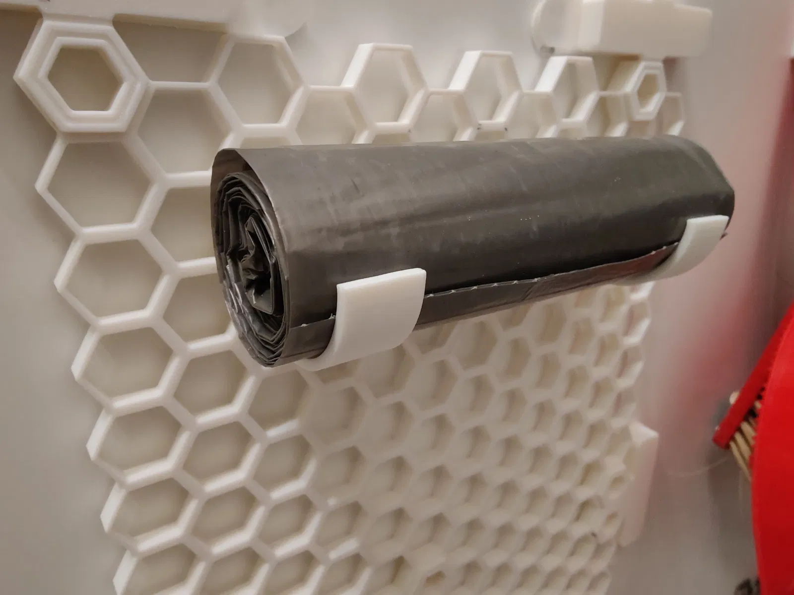 Một bản phối lại đơn giản của móc túi rác để gắn vào tường lưu trữ Honeycomb. Sản phẩm này giúp bạn dễ dàng treo túi rác, giữ cho không gian gọn gàng và ngăn nắp, đặc biệt hữu ích cho các bộ phận lưu trữ theo dạng tổ ong.