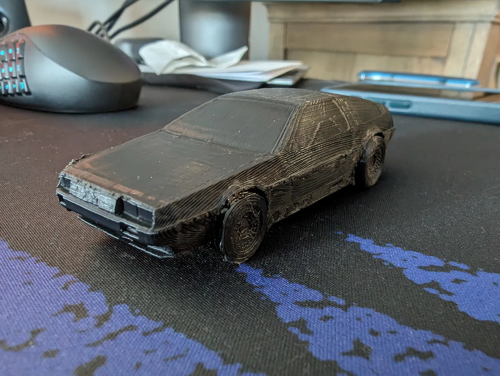 Tao đã chỉnh sửa lại mẫu Delorean để in nằm nghiêng, có sẵn bánh xe và trục luôn. In theo hướng đã định, không cần supports, nếu slic3r bị lỗi thì xài Cura nha. Xem bộ sưu tập xe của tao nè: [https://www.printables.com/@MichaelDasaro_749420/collections/933213](https://www.printables.com/@MichaelDasaro_749420/collections/933213)
