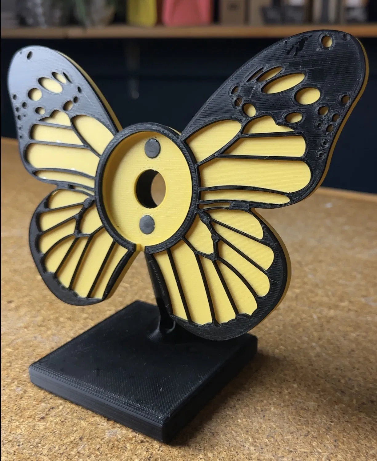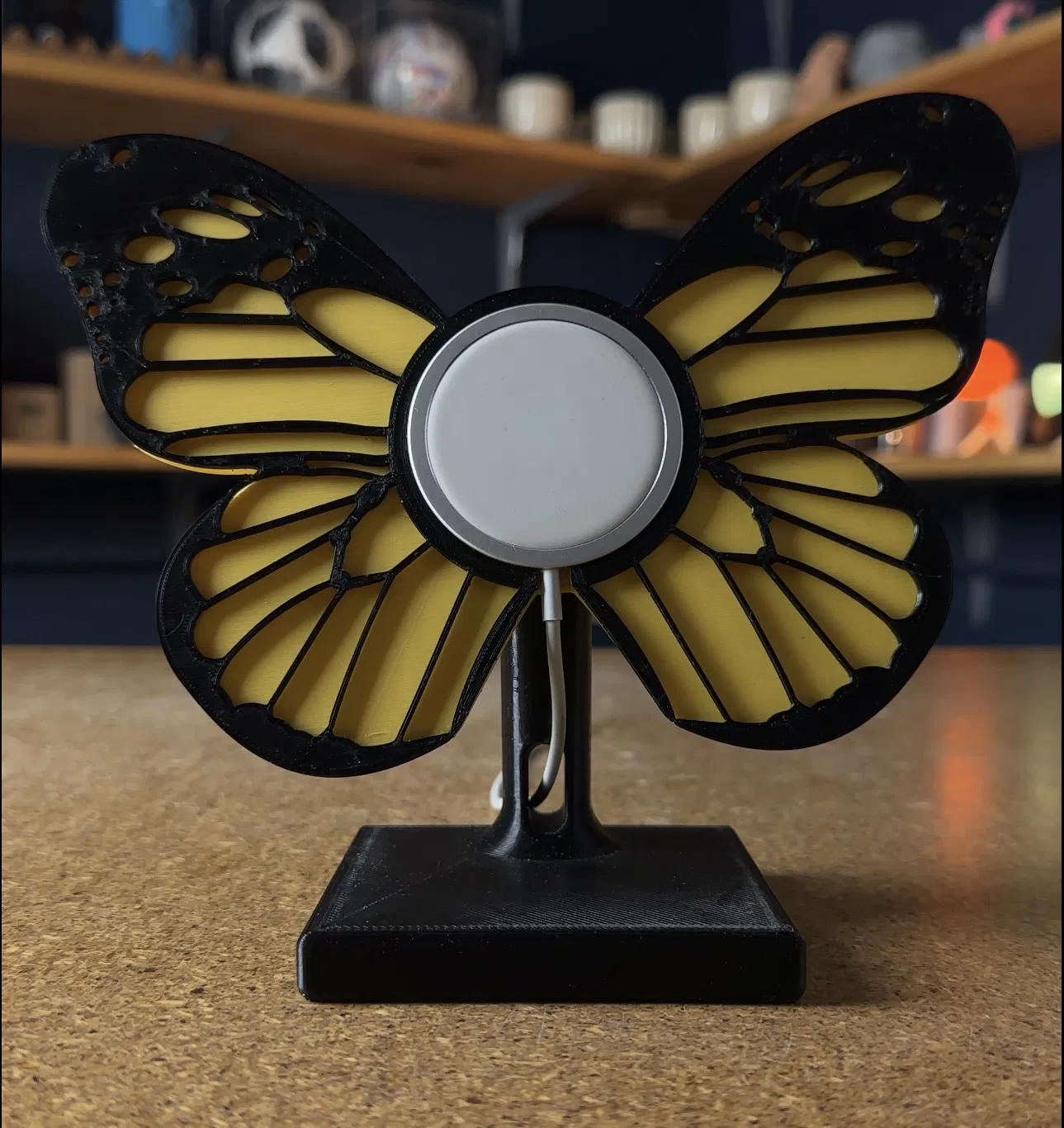 Tui làm cái đế sạc Magsafe hình con bướm này tặng bồ tui nè! Gồm 3 bộ phận: thân bướm, đường vân bướm và đế. Mọi người có thể tùy chọn màu sắc cho thân bướm, còn đường vân tui in màu đen cho nó tương phản. In ra rồi dán các bộ phận lại với nhau là xong, có chốt canh chỉnh cho dễ. Tui hy vọng mọi người thích nha!