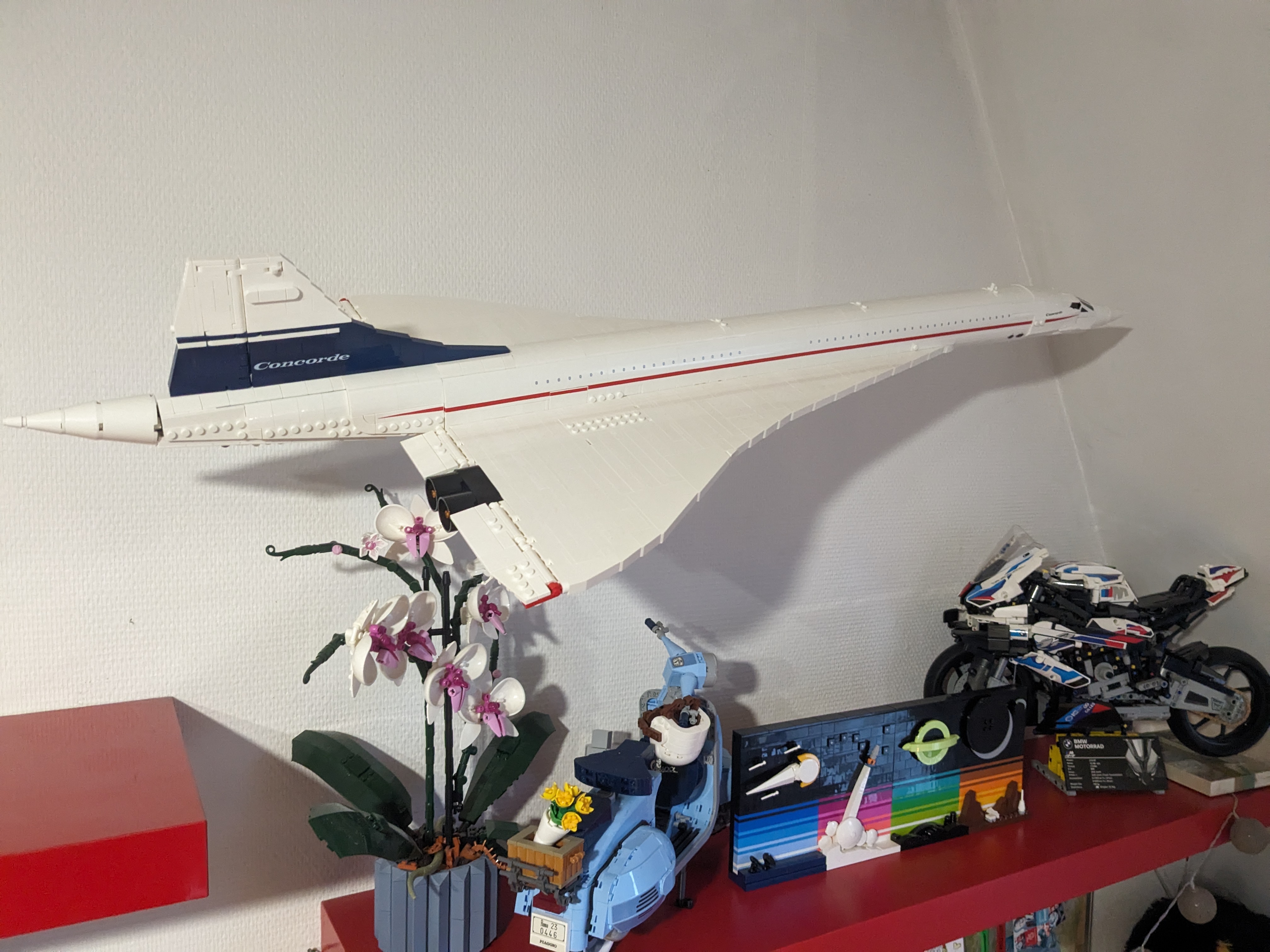 Một đế treo tường đơn giản dành cho Lego Concorde. Bạn chỉ cần treo đế bằng 4 con vít gỗ tiêu chuẩn và ngắm nhìn chiếc Concorde tuyệt đẹp của mình. Phù hợp cho mọi người muốn trưng bày mô hình Lego Concorde một cách gọn gàng và tinh tế.