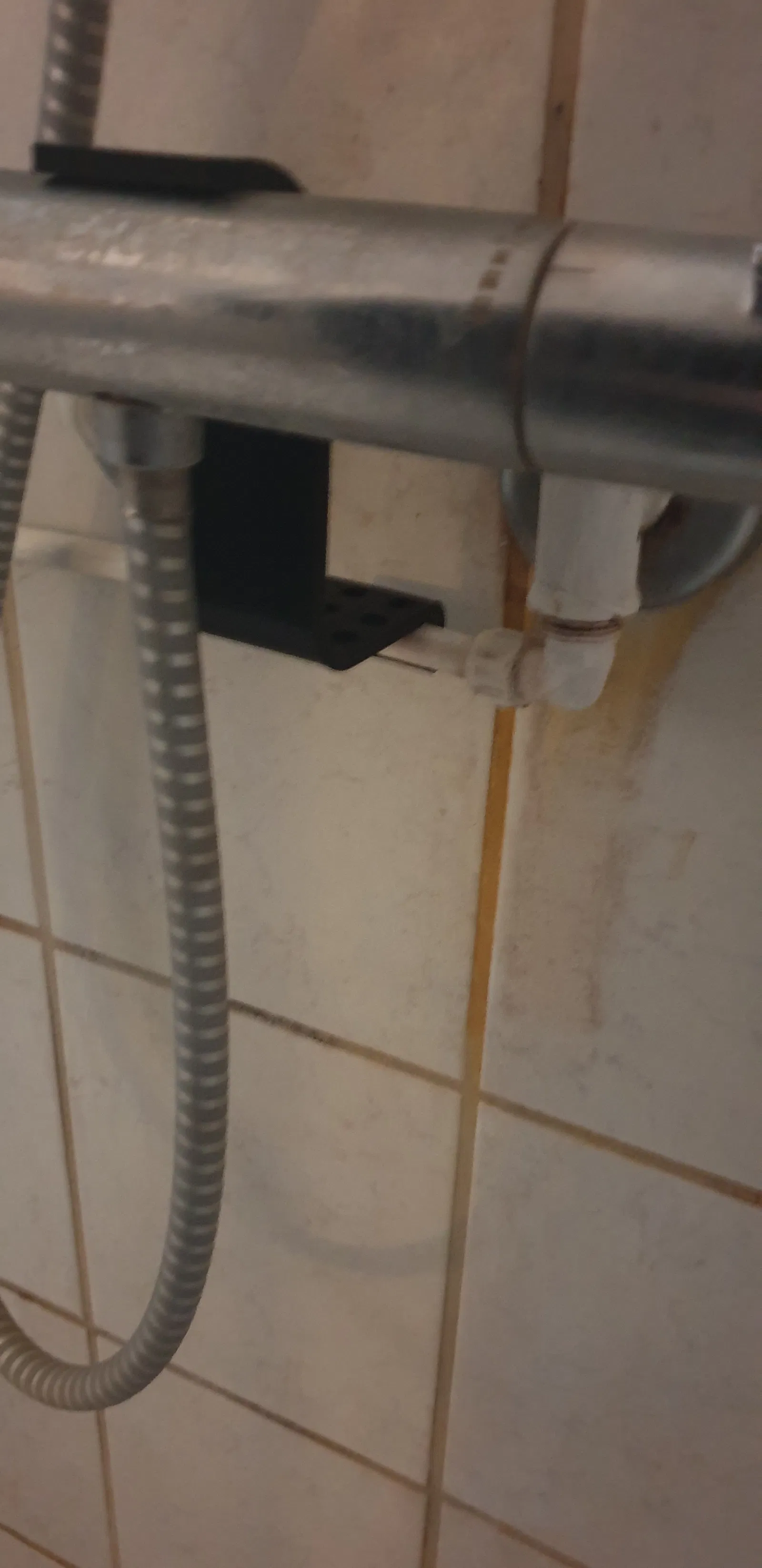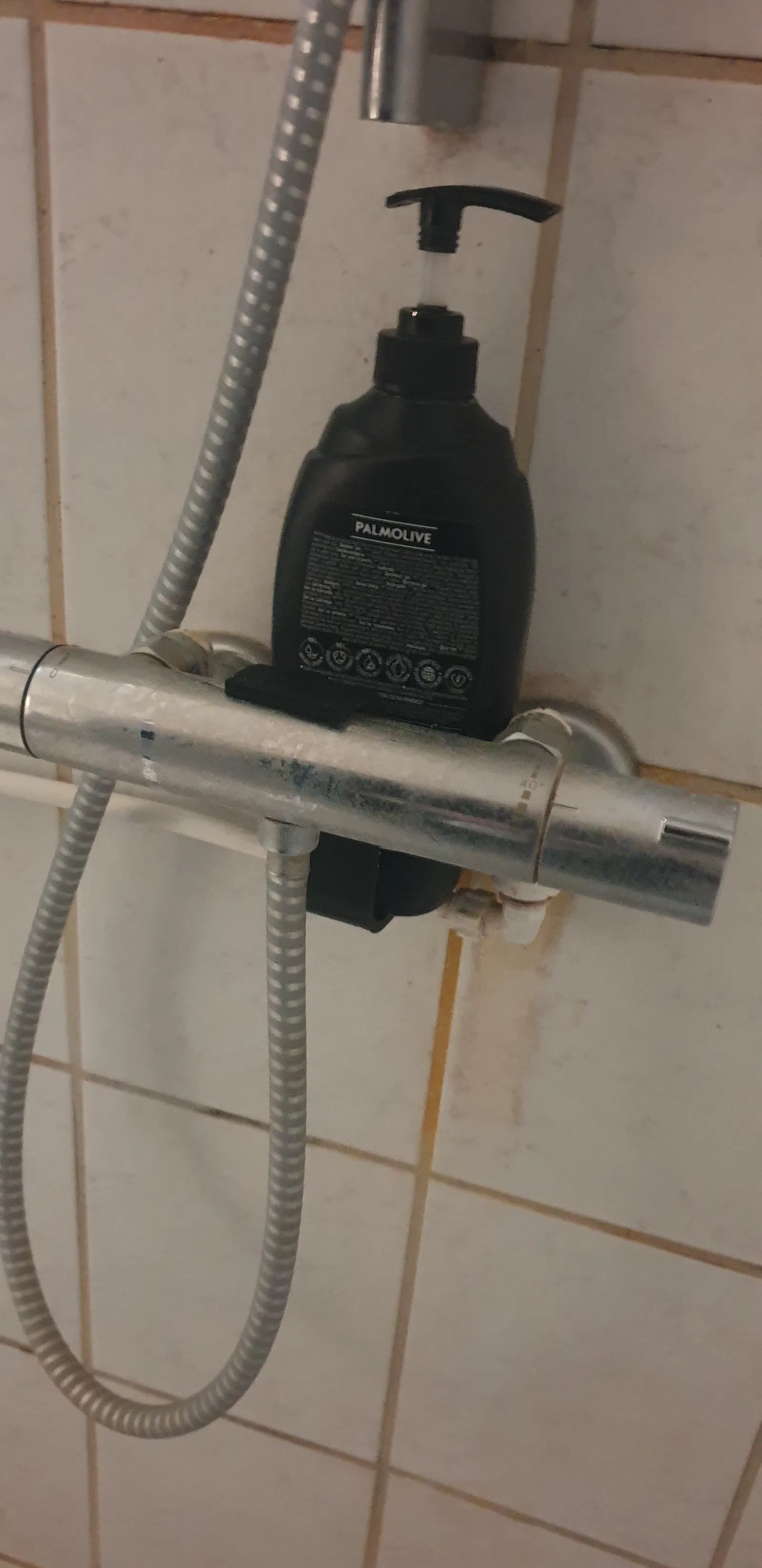 Giá đỡ xà bông trong phòng tắm phía trên vòi sen và vòi nước.