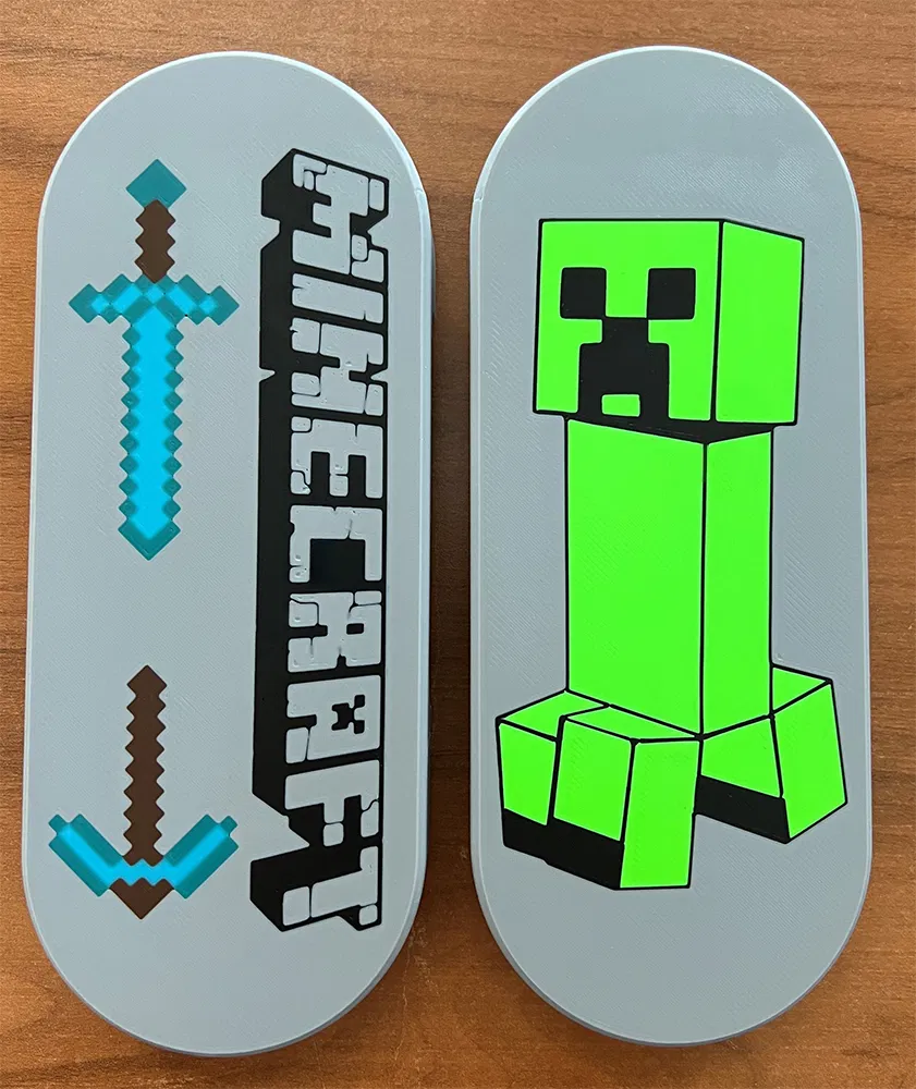 Phiên bản Minecraft của hộp bút "shutter box" của 3DPrinty, được thiết kế để in bằng MMU. Cũng có thể in bằng máy in một đầu extruder theo kiểu MMU ảo.