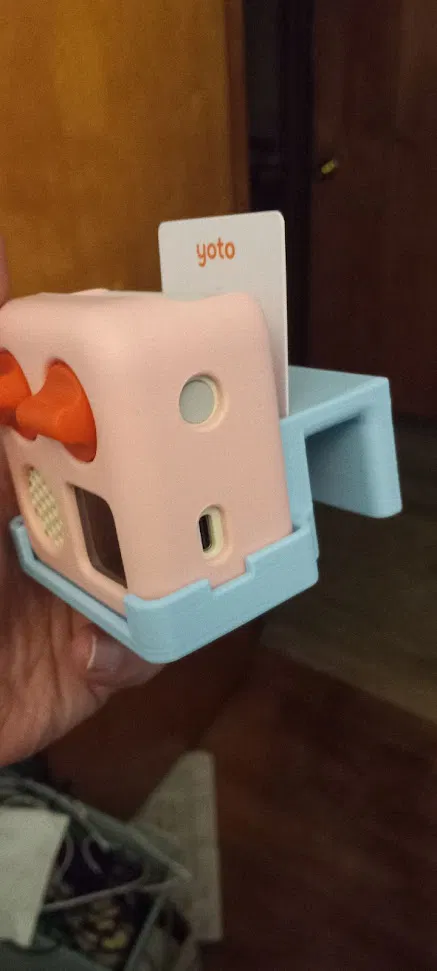 Giá đỡ Yoto Player gắn vừa với khung giường tầng tiêu chuẩn. Tôi in bằng PLA+ với 50% độ đặc ruột. Tuy nhiên, cần có vật liệu hỗ trợ để in phần mép gắn vào giường. Dù có vật liệu hỗ trợ và độ đặc ruột 50%, cái này vẫn in xong trong khoảng 1 giờ trên máy K1 Max của tôi.
