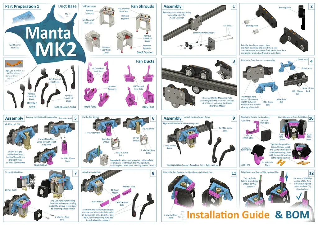Đây là một bản remix của Hệ thống Quạt Làm Mát Manta Compact của tôi. Phiên bản này chỉ tương thích với Ender 5. Phiên bản Ender 3 có ở đây: Manta MK2 Duct & Tool Head System by boothyboothy | Download free STL model | F3D.com