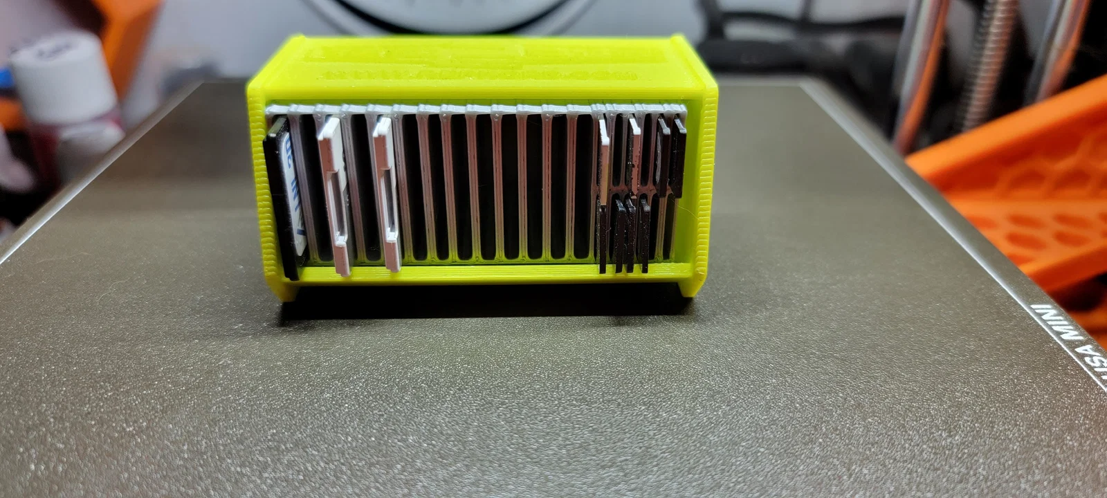 Chi tiết này cung cấp một giải pháp lưu trữ gọn gàng cho các thẻ nhớ của bạn, với 13 khe cắm thẻ Full Size và 12 khe cắm thẻ Micro, giúp bạn dễ dàng sắp xếp và truy cập các tập tin in 3D. Rất phù hợp cho bộ sưu tập thẻ nhớ SD của bạn.