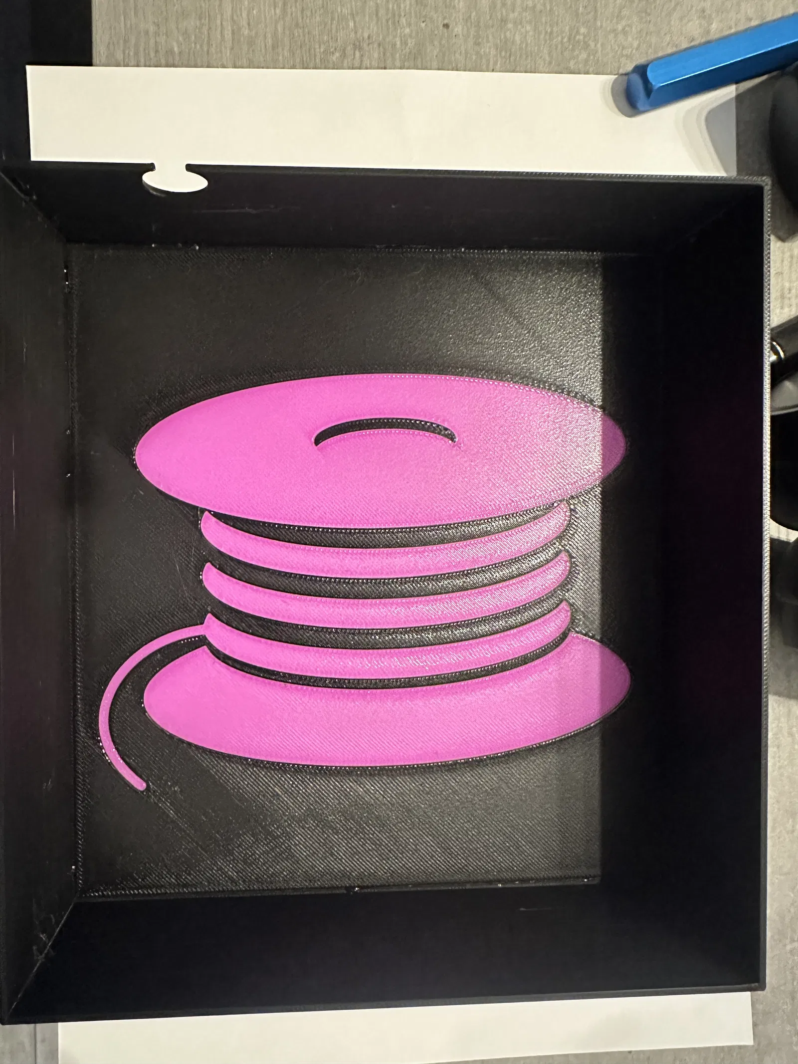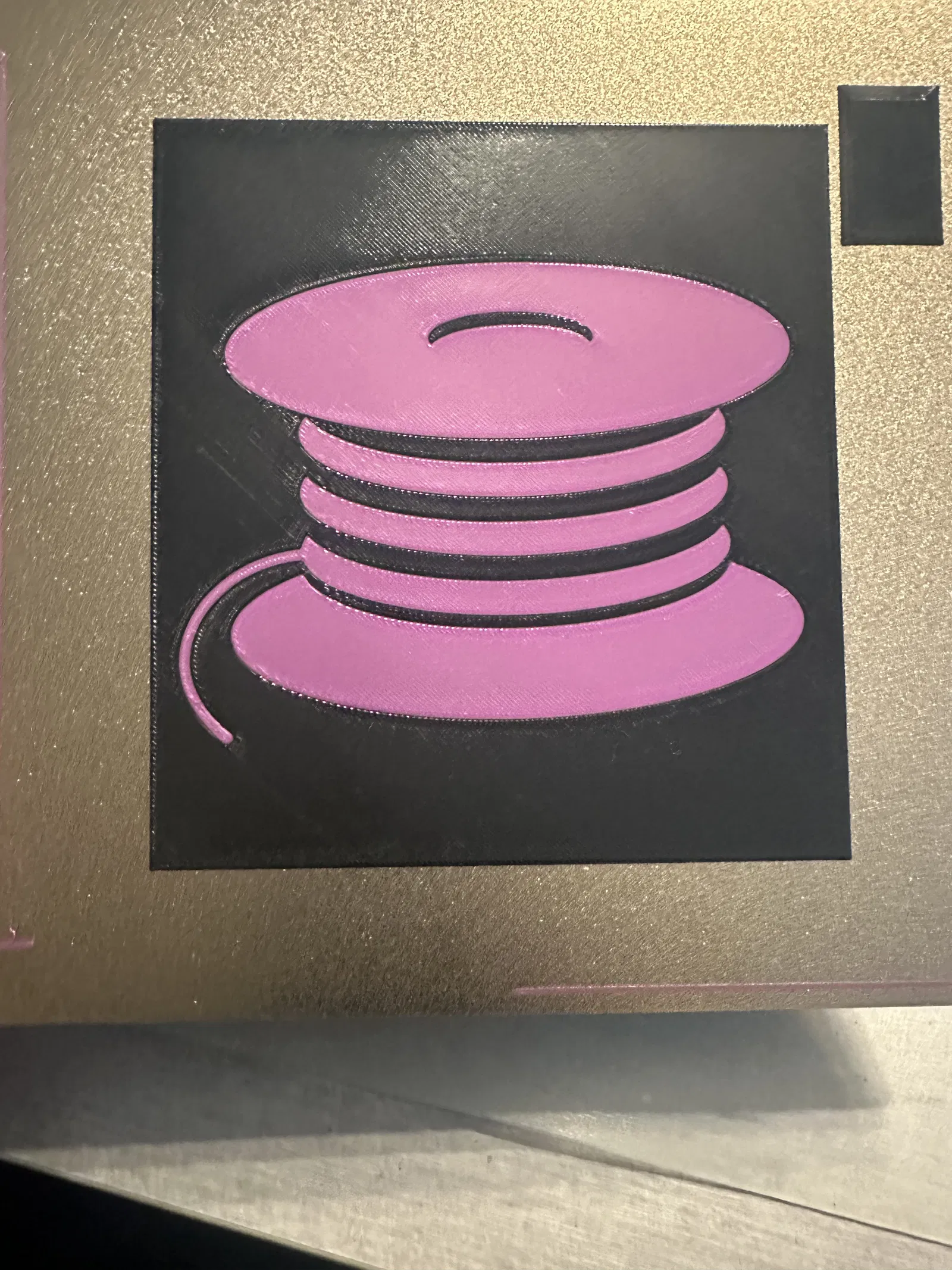Khi in, hãy tô màu cho phần ruột, tức là logo cuộn dây tóc, với mặt hiển thị ra ngoài và sau đó đặt mặt hiển thị lên trên mặt bàn in. Sử dụng bàn in PEI sẽ cho hiệu ứng đẹp nhất.