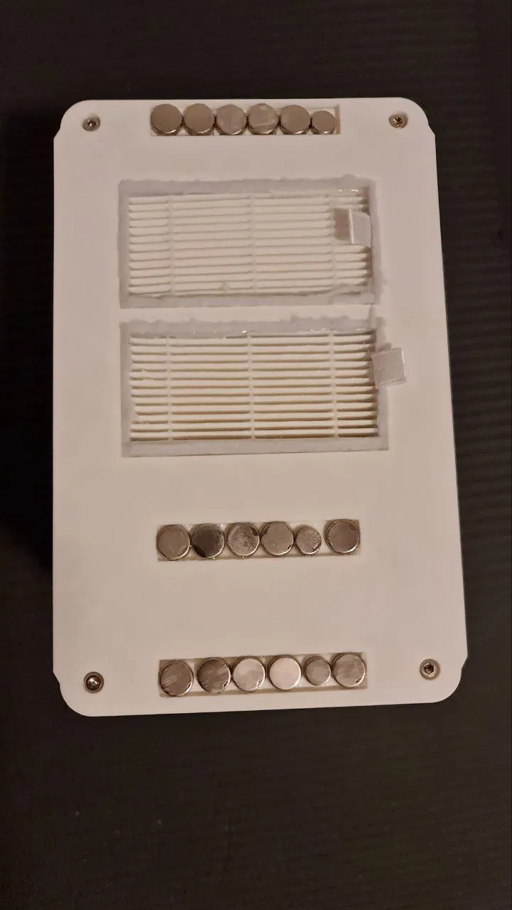 Chế cái khung lọc theo kiểu HEPA. In thì úp lưới xuống nha mấy bác. Có thể cần cắt xíu cái lọc để nó fit vô cho ngon lành.