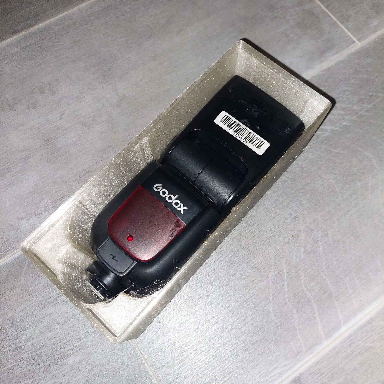 Cái đế giữ đèn flash Godox TT685 / TT685 II dạng Gridfinity có thể xếp chồng lên nhau. Cái này làm ra để đựng đèn flash Godox TT685 và TT685II, có thể dùng cho các mẫu khác có gờ để xếp chồng.