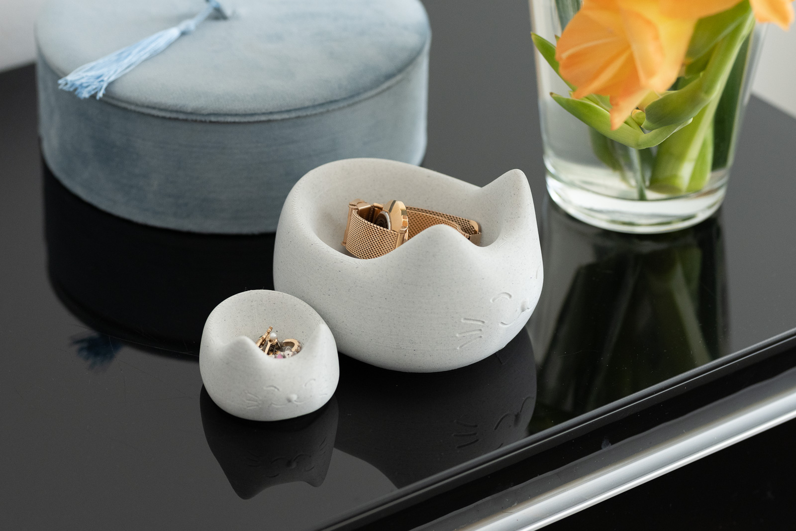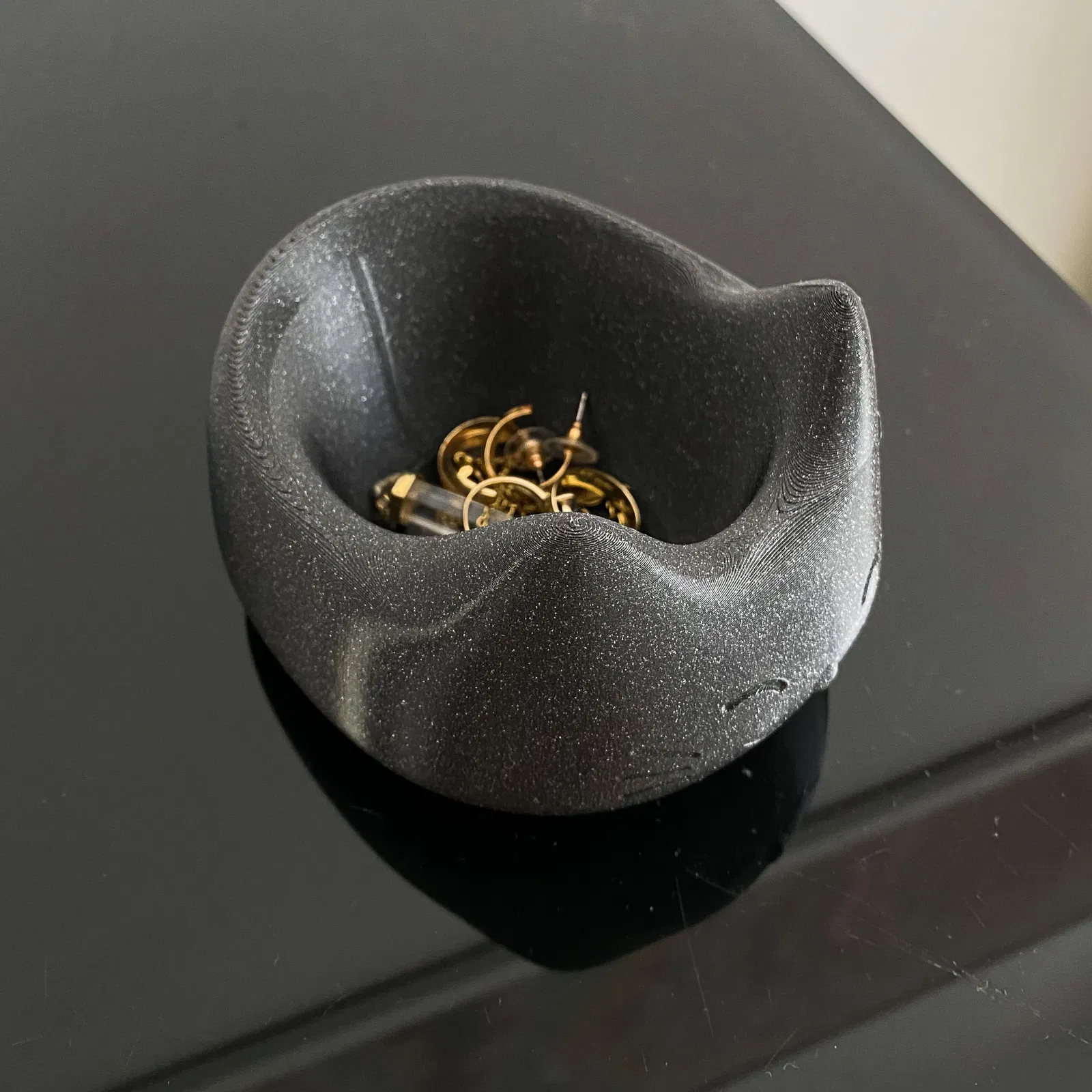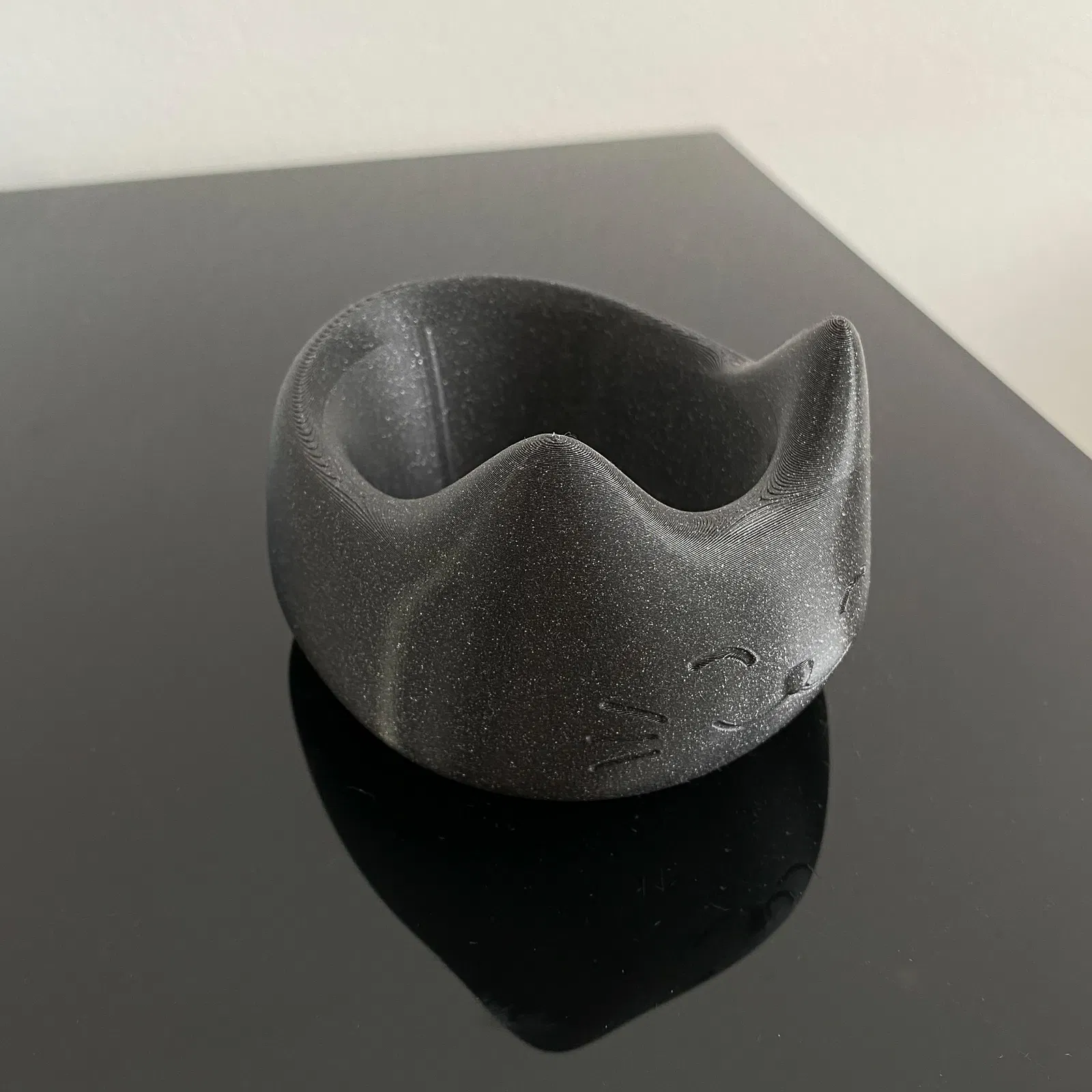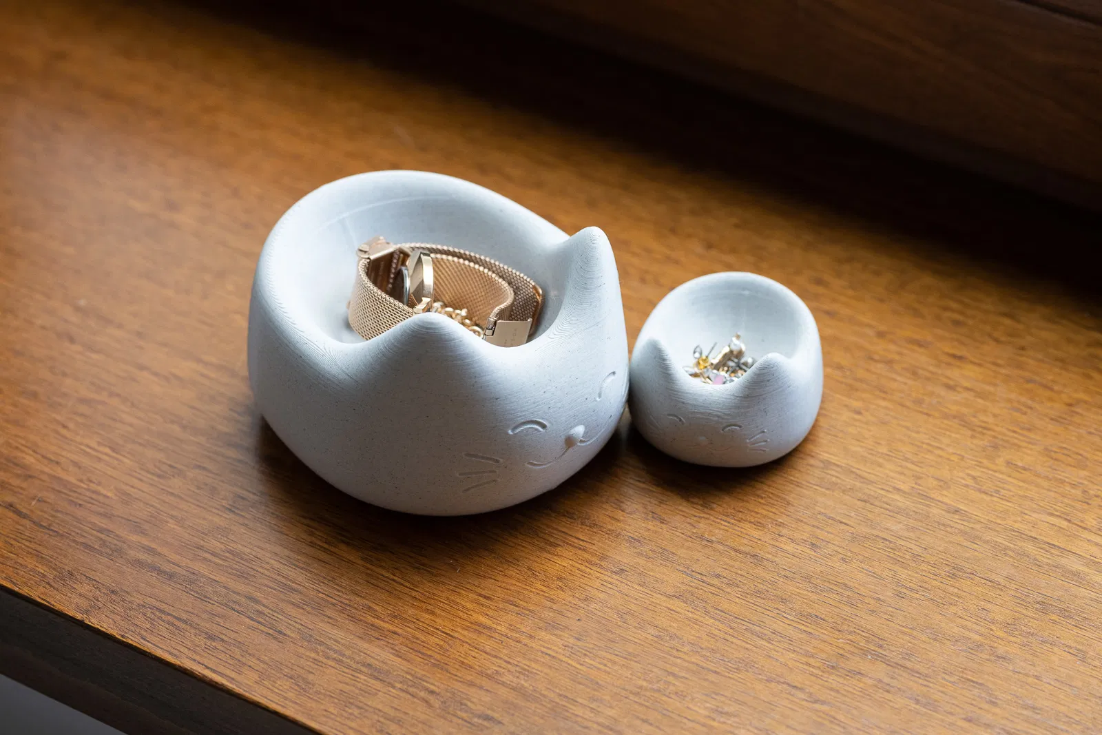 Cái chén nhỏ xinh xắn, thiết kế theo hình chú mèo con. Có hai phiên bản nông và sâu, không cần support, có thể tùy chỉnh kích thước. Rất thích hợp để đựng đồ dùng cá nhân, trang sức trong phòng ngủ, phòng khách.