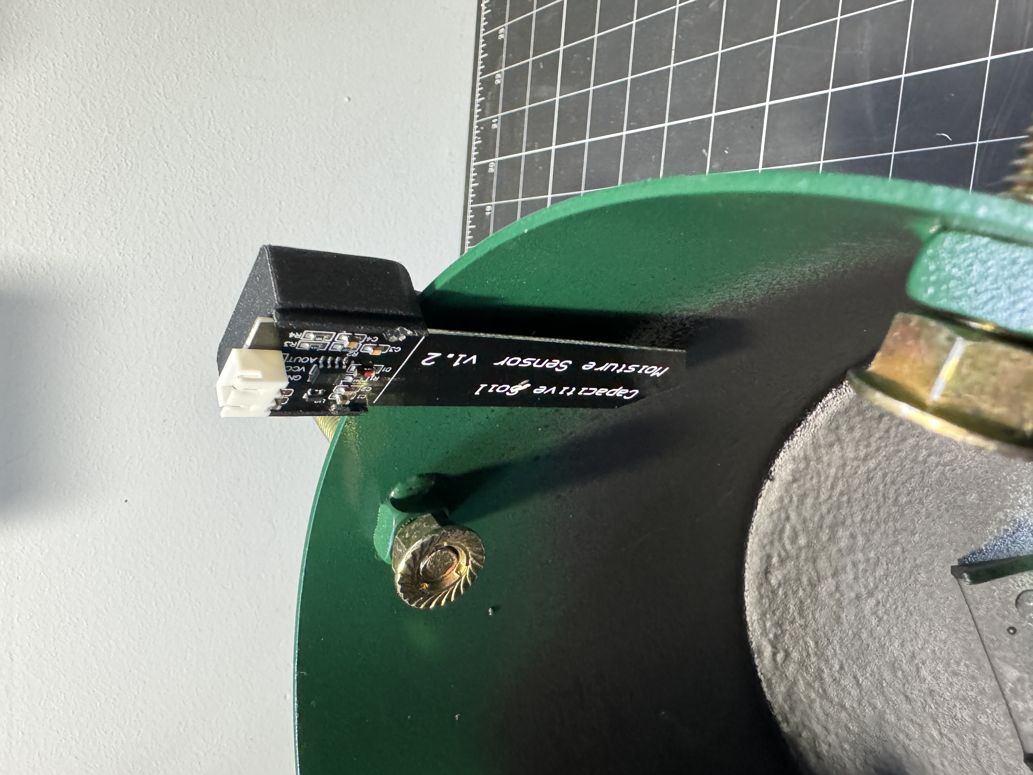 Cái cảm biến độ ẩm điện dung thì vừa khít với bản in, nhưng bạn có thể dùng một ít keo nến hoặc keo siêu dính để đảm bảo nó không bị rơi ra.