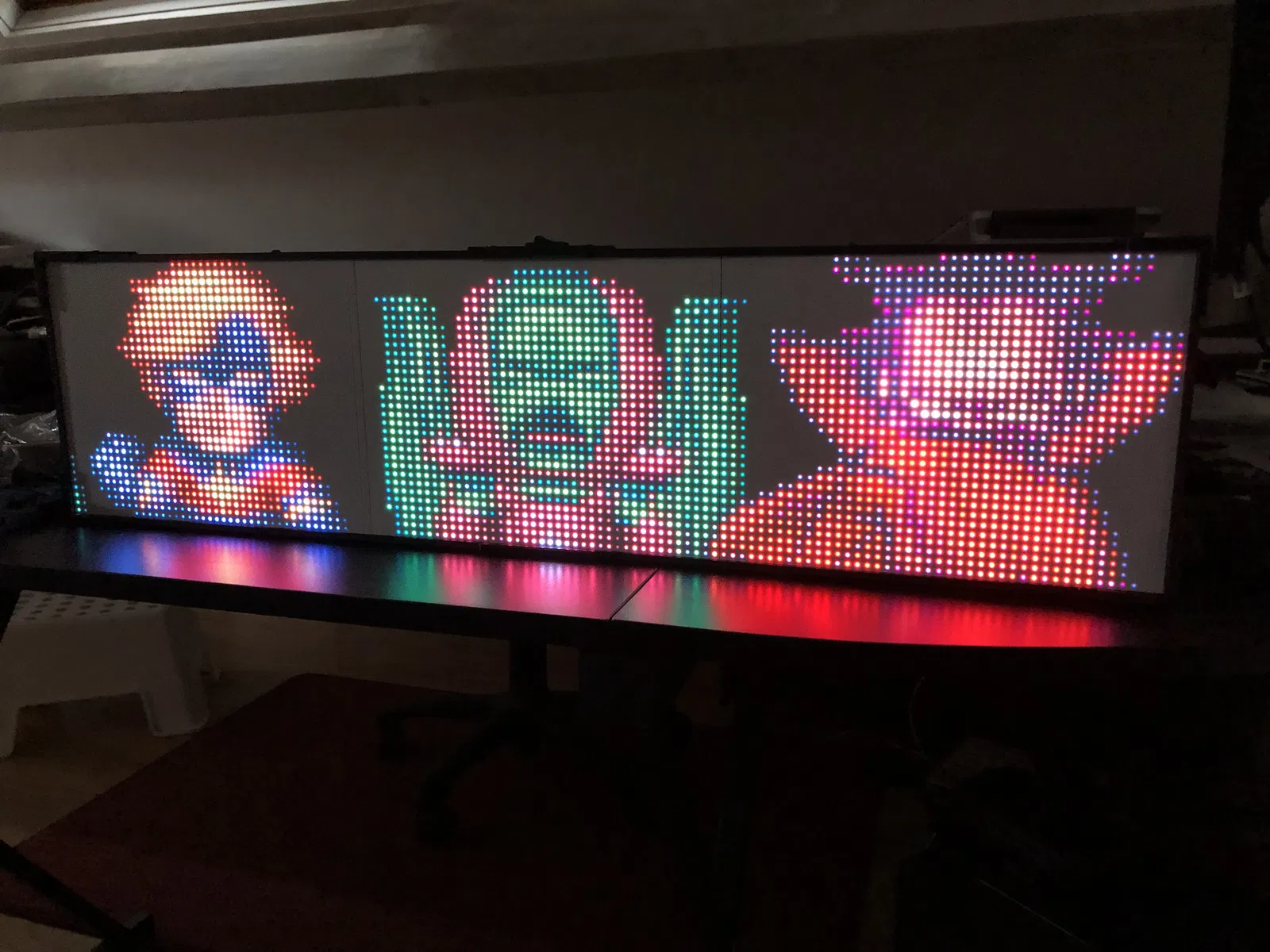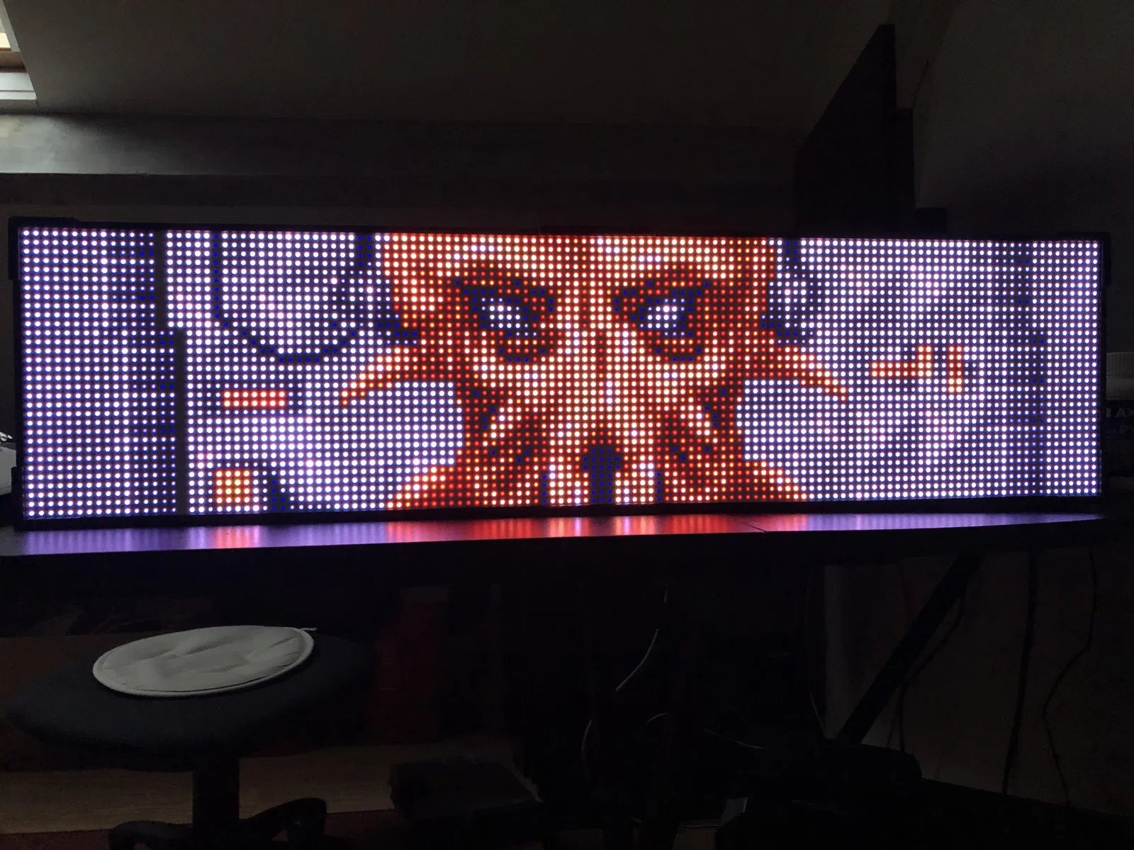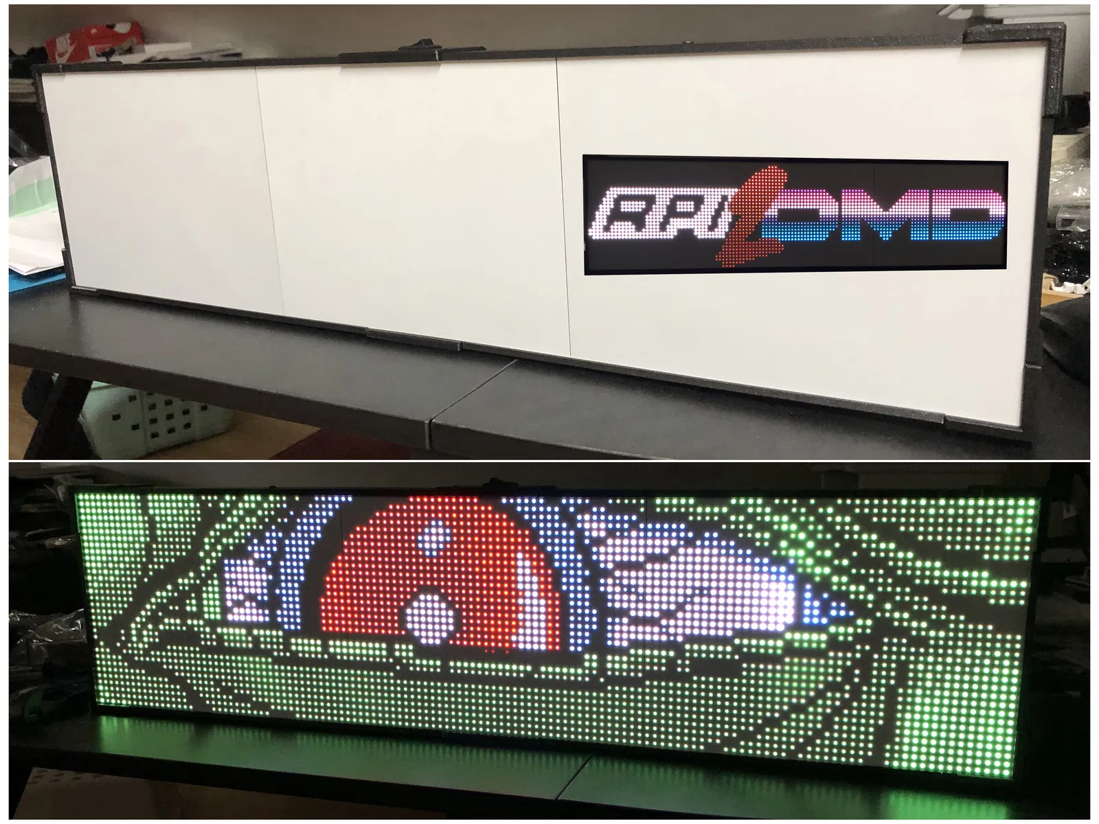 • 2 tấm DMD 32x16 cm với P5 (Leds SMD 2121): Tôi đang chờ các tấm DMD P5 mới với đèn LED SMD3528 để xem sự khác biệt. Rõ ràng là kết quả hiển thị rất ấn tượng.
