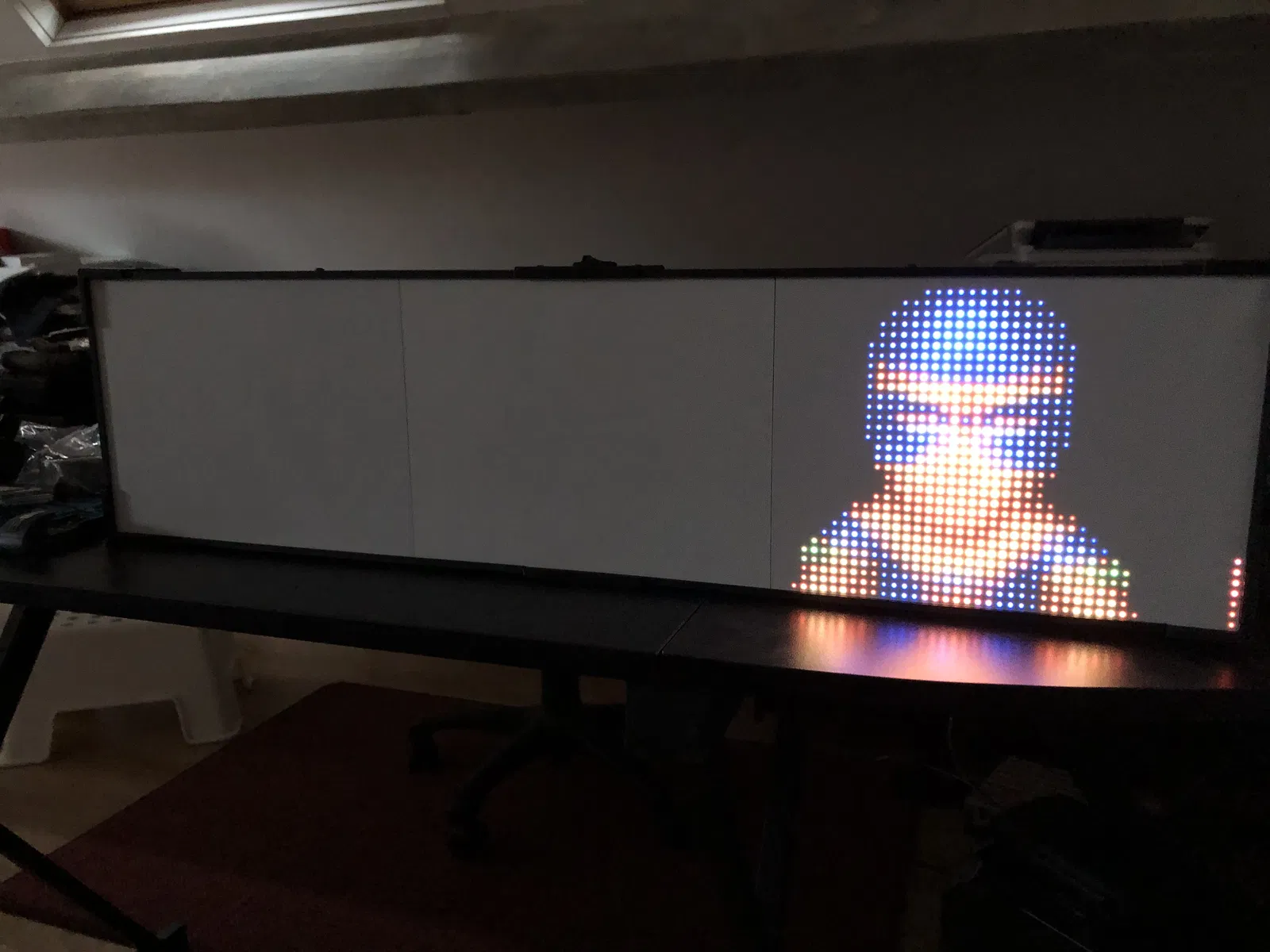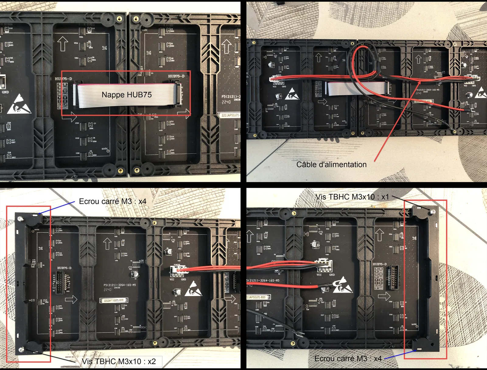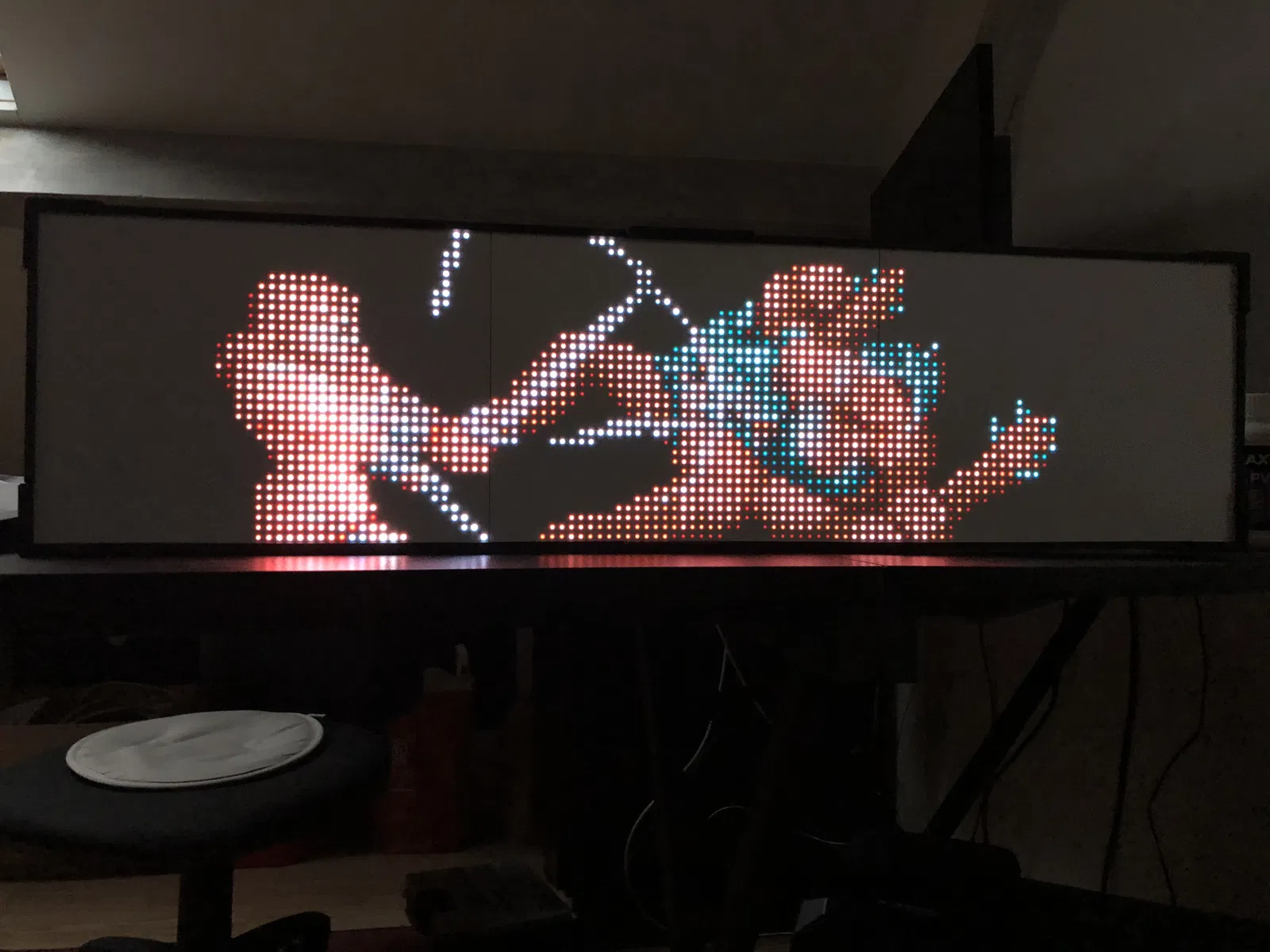 • 2 tấm DMD 32x16 cm với P5 (Leds SMD 2121): Tôi đang chờ các tấm DMD P5 mới với đèn LED SMD3528 để xem sự khác biệt. Rõ ràng là kết quả hiển thị rất ấn tượng.