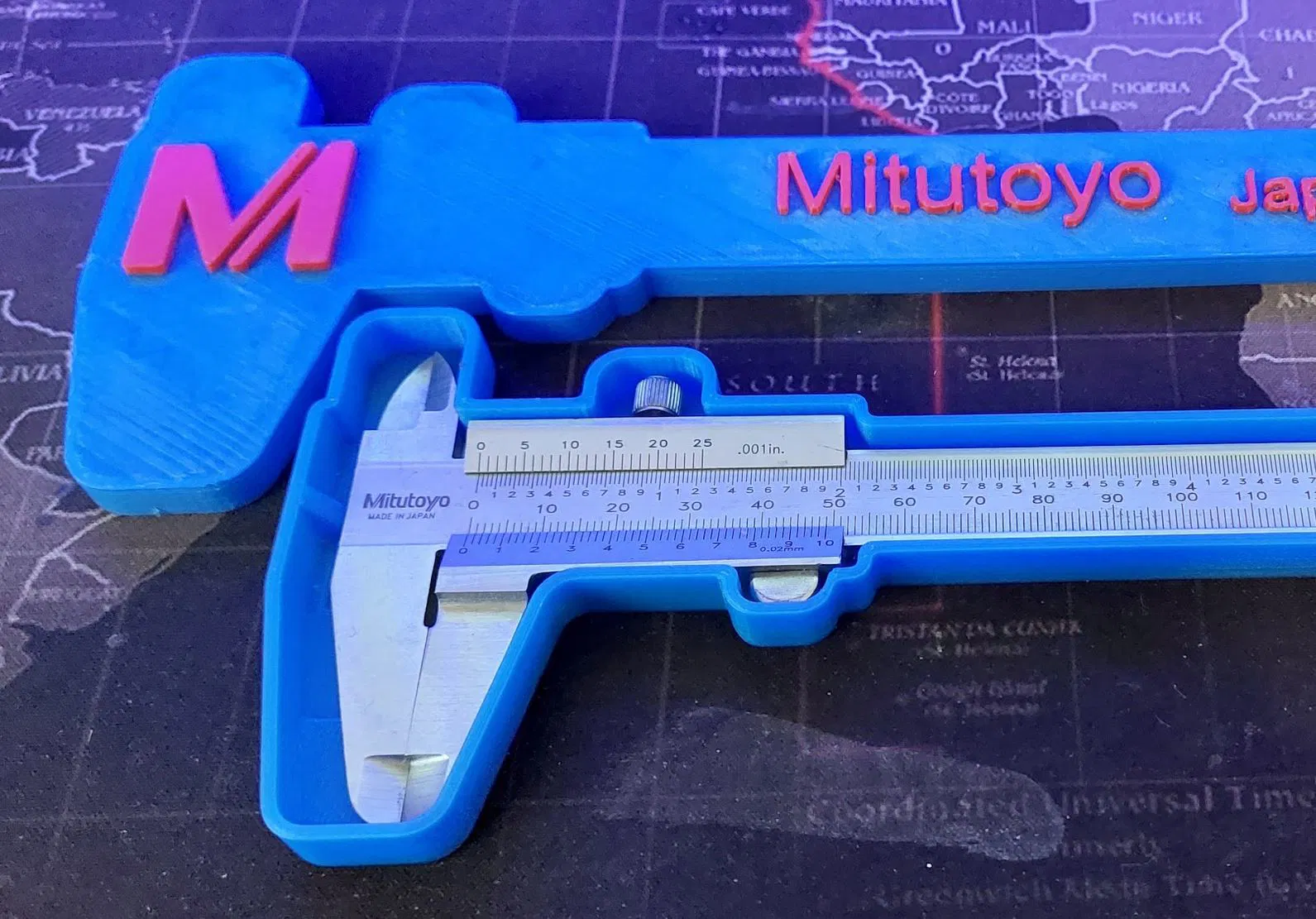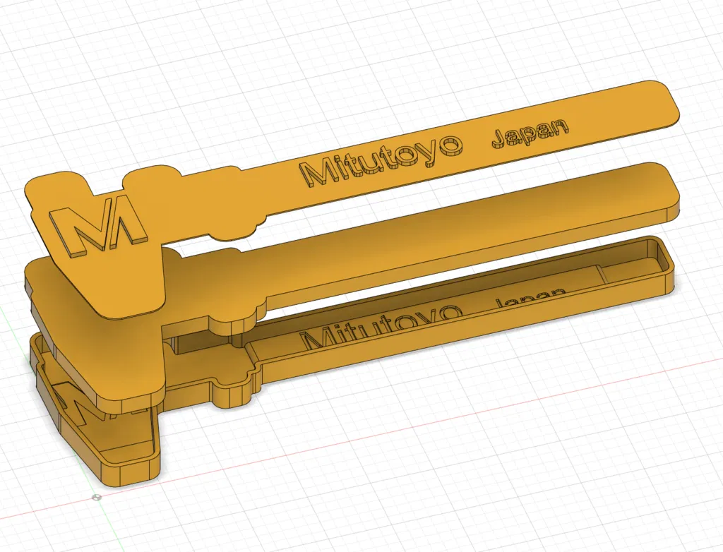 Hộp đựng có nắp cho thước cặp Mitutoyo 0-150mm (hệ mét/inch, mã Ref 530-104). In bằng PLA, độ phân giải 0.3mm, infill 20%. Thích hợp cho máy Prusa I3 MK3S.