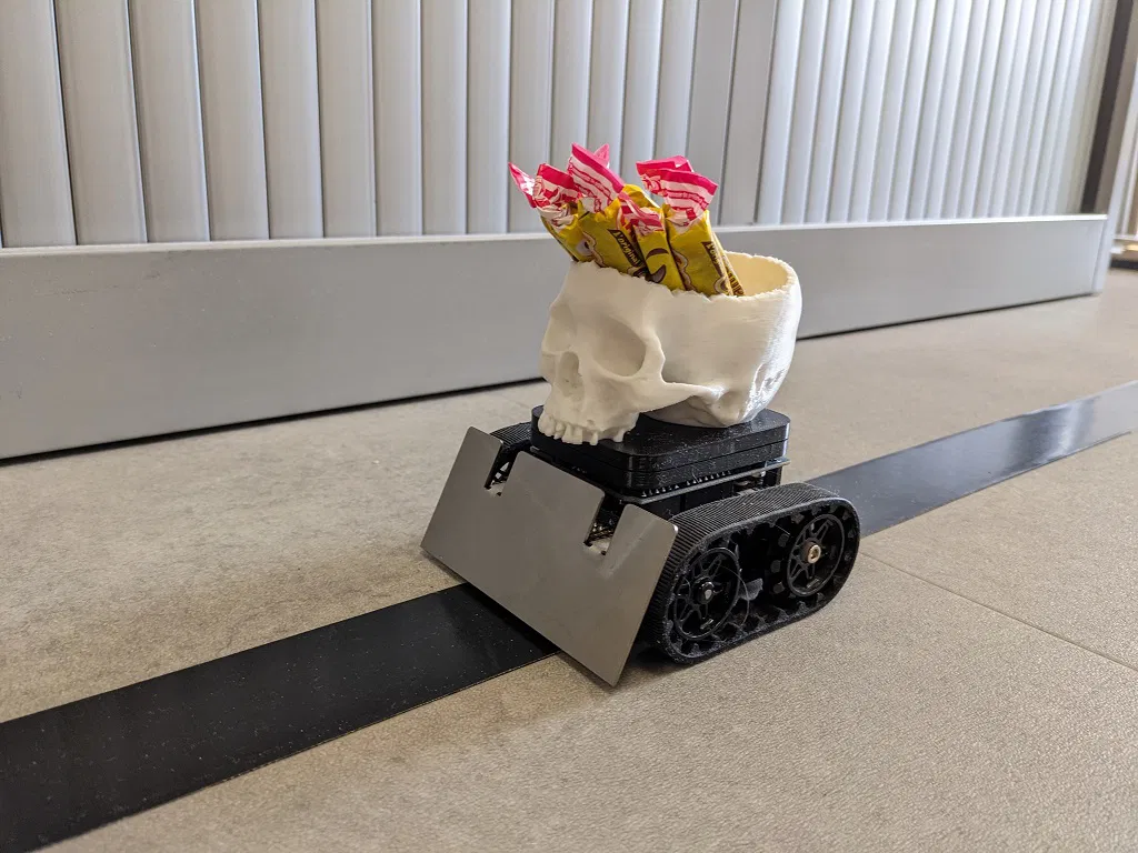 Chocobot, con robot đi phát socola, kẹo trong văn phòng nè. Mấy bồ dễ dàng làm theo con robot này với 1 con robot dò line (như Zumo robot) và vài cuộn băng keo đen nha. Xem thêm chi tiết trên blog của tui: https://arduiblog.com/2023/10/02/chocobot/