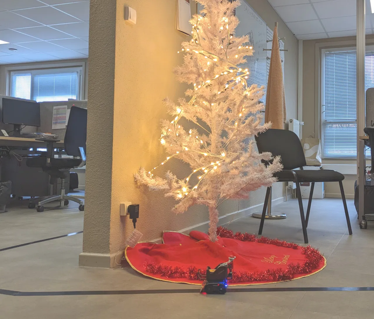 Xin chào mọi người, đây là phiên bản Giáng sinh của ChocoBot, con robot đã phân phát kẹo ở văn phòng mình mấy tháng nay rồi. Ai cũng thích nó hết trơn vì nó mang lại niềm vui với chút đồ ăn vặt cuối buổi chiều cho tụi mình.