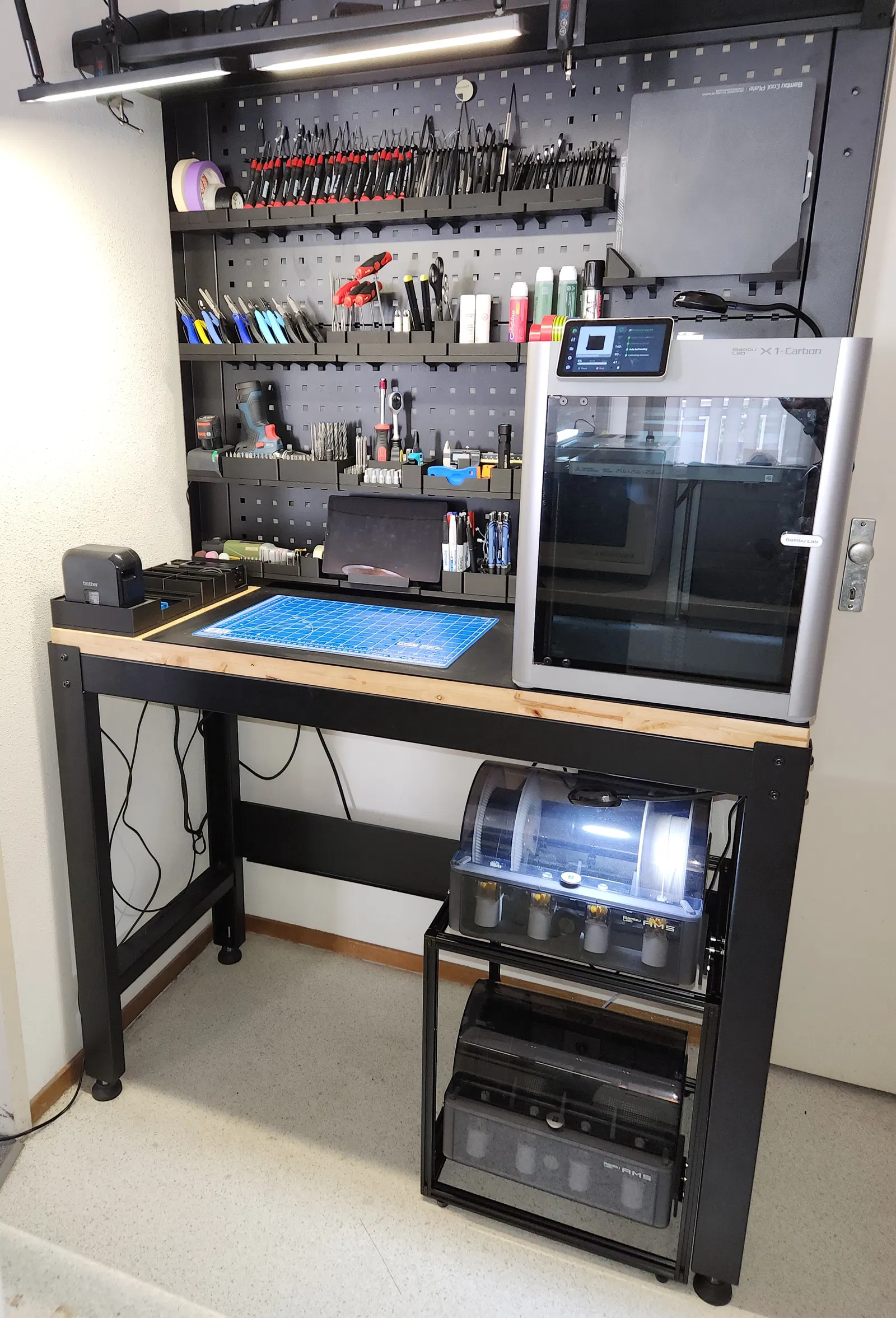Cái giá đỡ, cho 2 cái AMS, được làm từ 4 thanh v-slot dài 500mm và 10 thanh dài 400mm với các tấm khung gantry, dùng làm thanh trượt. (khoảng cách lỗ là 10mm)