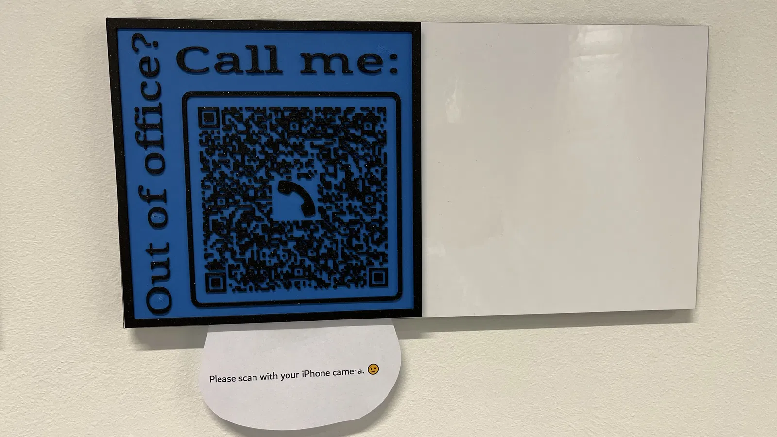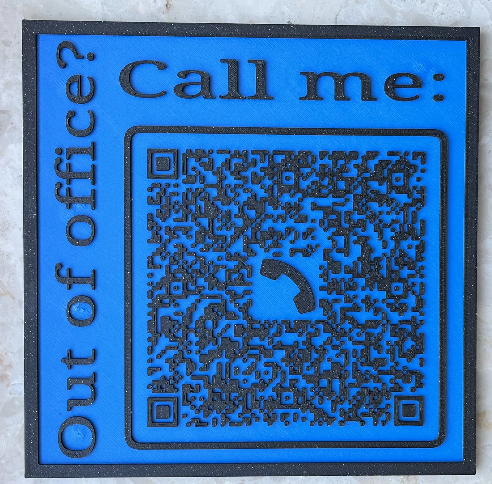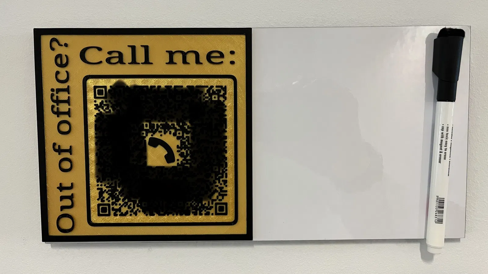 Biển báo thông tin để quét bằng camera điện thoại cho tên và số điện thoại. Trông nó có giá trị và thu hút ánh nhìn. Biển báo còn có khe cắm nam châm 10x2mm ở mặt sau. Có hướng dẫn chi tiết để tạo mã QR và in.