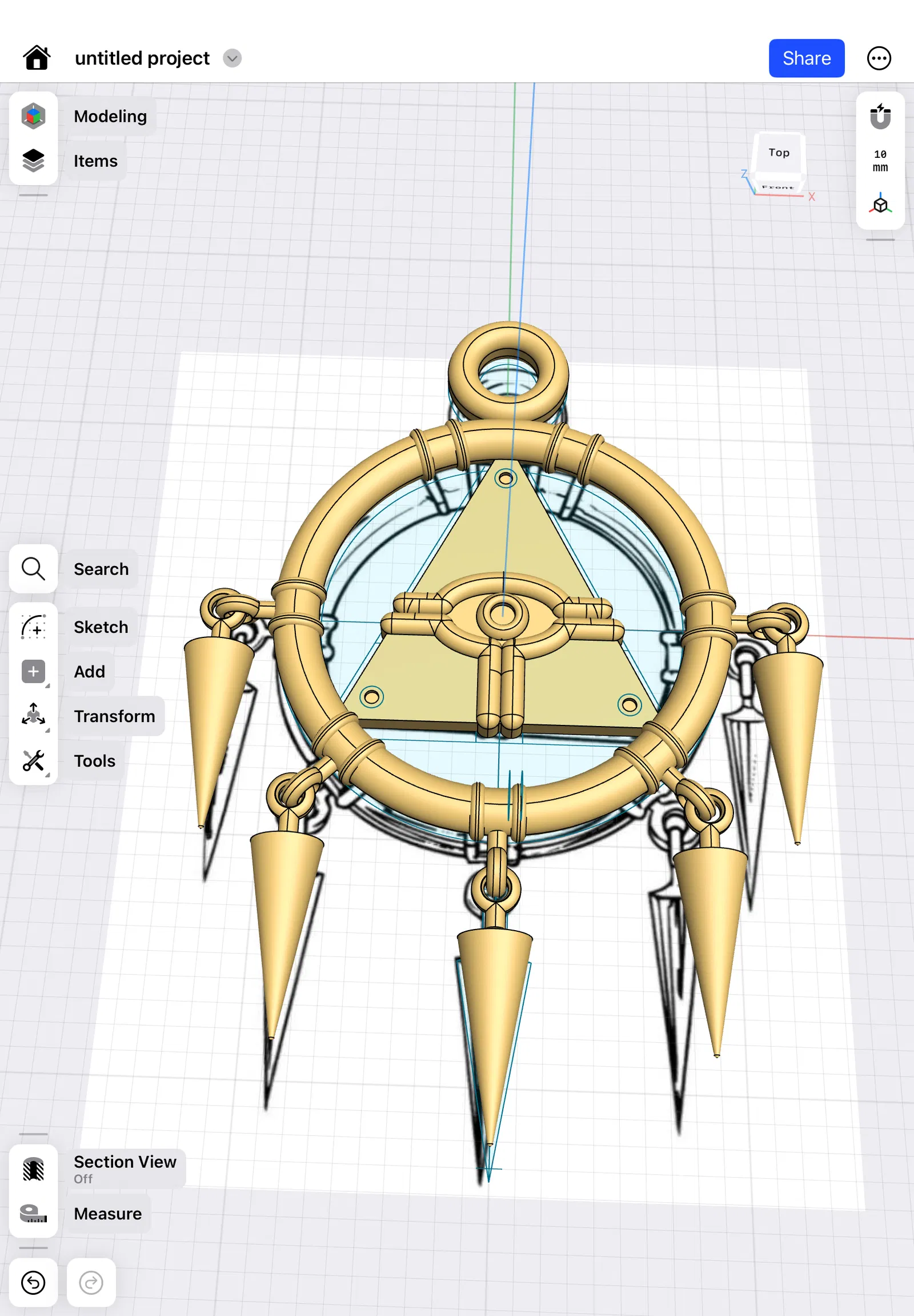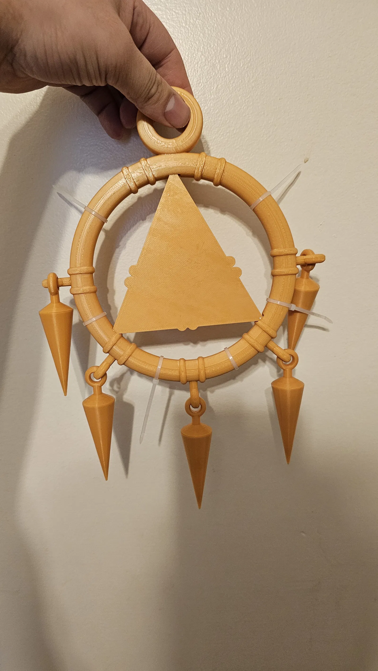 Đây là chiếc nhẫn thiên niên kỷ lấy cảm hứng từ bộ anime đình đám Yugioh. Mình khuyên bạn nên in với tỉ lệ 75% để có kích thước bằng thật, nhưng bạn cứ thoải mái in nhỏ hơn cho mặt dây chuyền hay bông tai nha. Mô hình này cần keo để dán, mình gợi ý dùng dây rút để giữ các bộ phận lại với nhau trong khi keo khô.