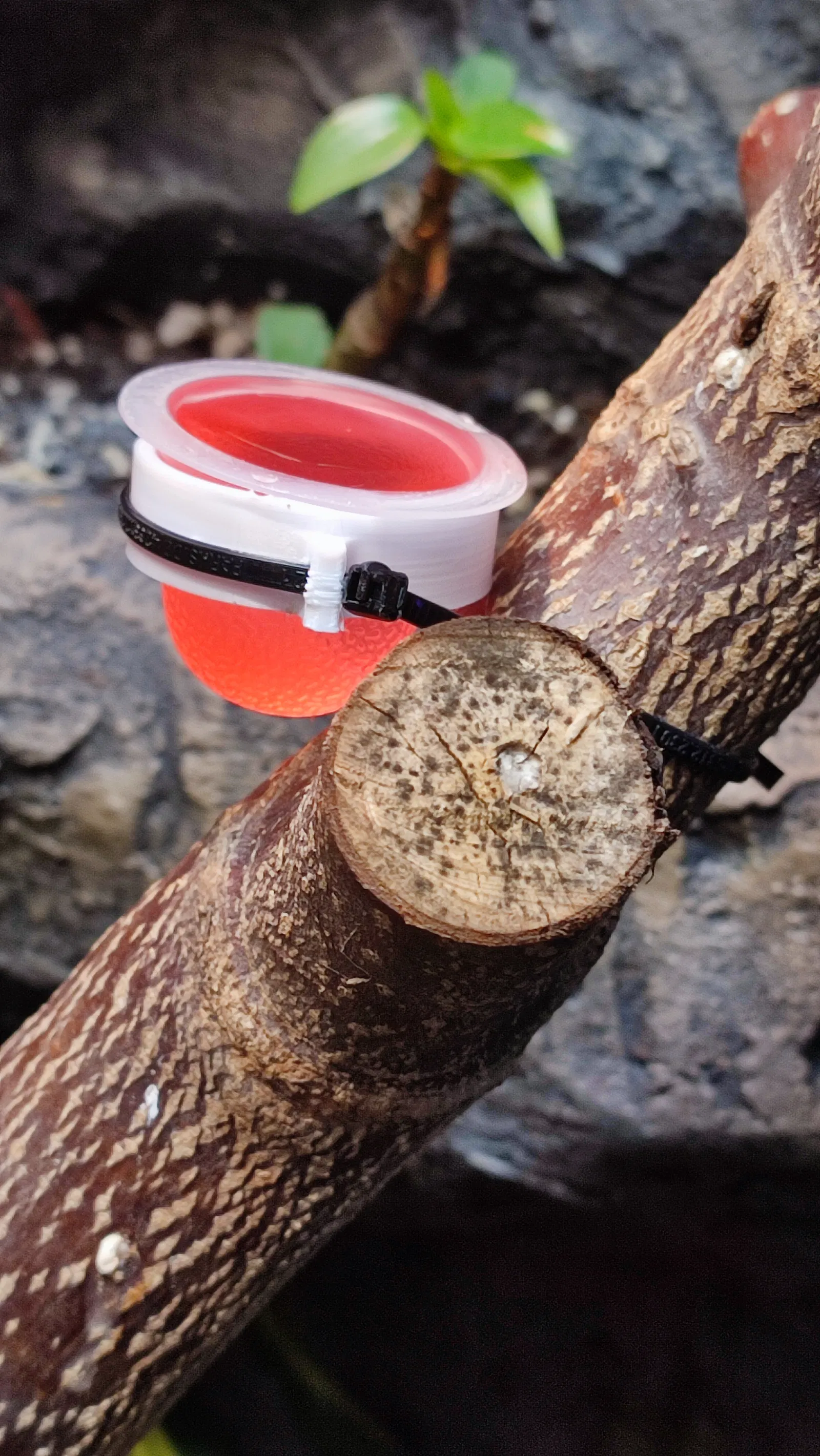 Cái này in 3D để gắn bình thức ăn cho mấy con thằn lằn trong terrarium á, nhìn gọn lắm, dễ gắn lên cành cây hay chỗ nào cũng được. In bằng PETG là ổn áp.