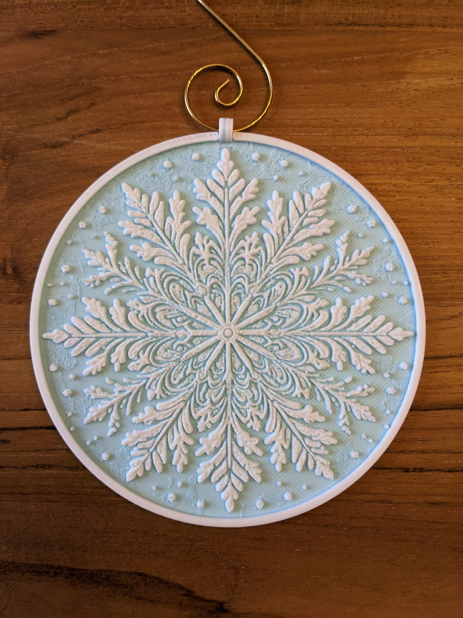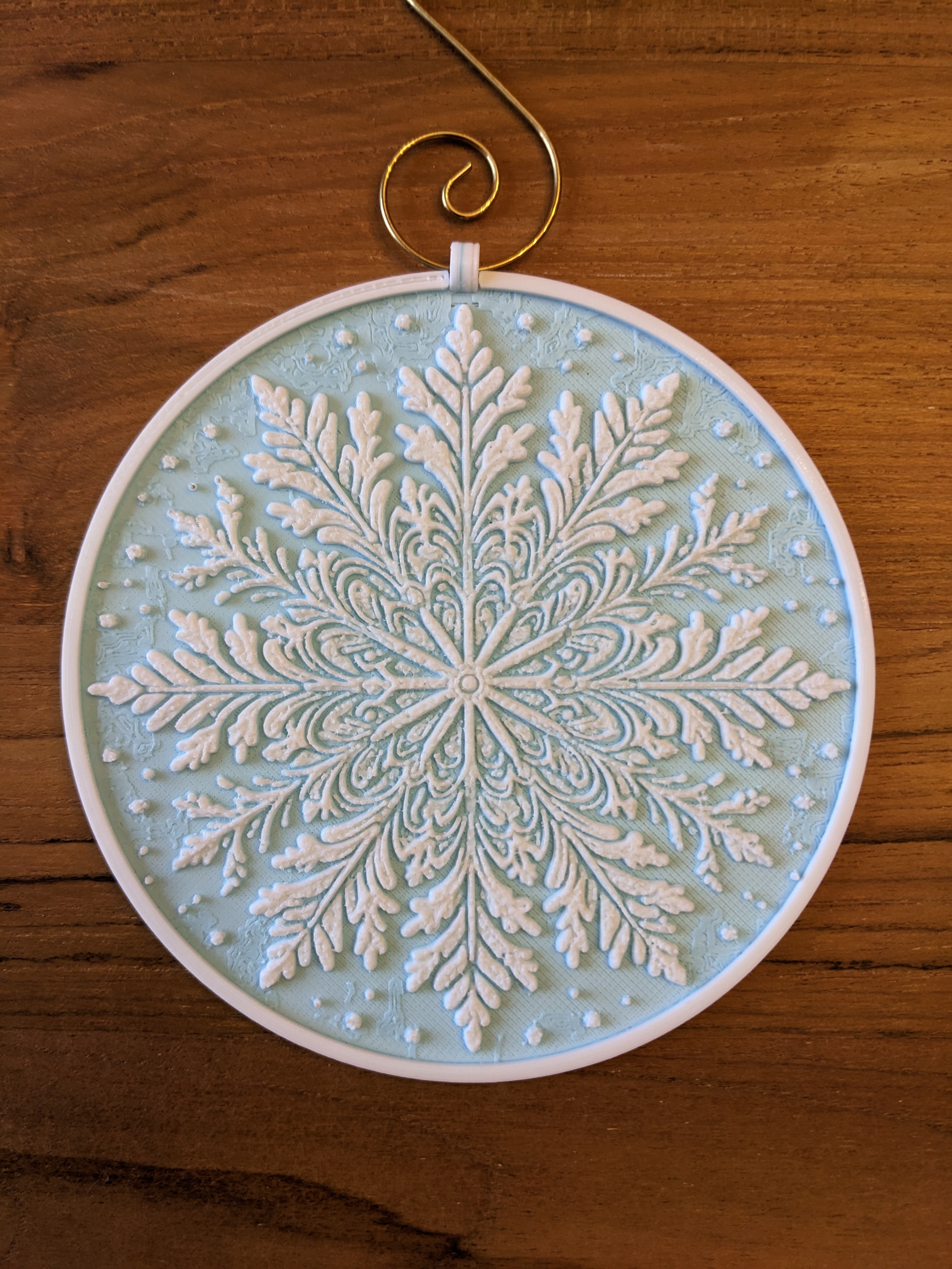 Nếu bạn muốn dùng cái đế lót ly như một món đồ trang trí, tôi cũng đã tải lên các tệp STL cho một vòng treo và một hình trụ khác để thêm vào như một bộ phận âm. Trong PrusaSlicer, hãy thêm bộ phận âm vào bông tuyết ở đâu đó dọc theo viền để tạo một lỗ khoét, sau đó in vòng treo nằm phẳng trên khay in (nên dùng brim). Sau khi in xong, chỉ cần dán vòng vào lỗ khoét mà bạn đã tạo trong đế lót ly.