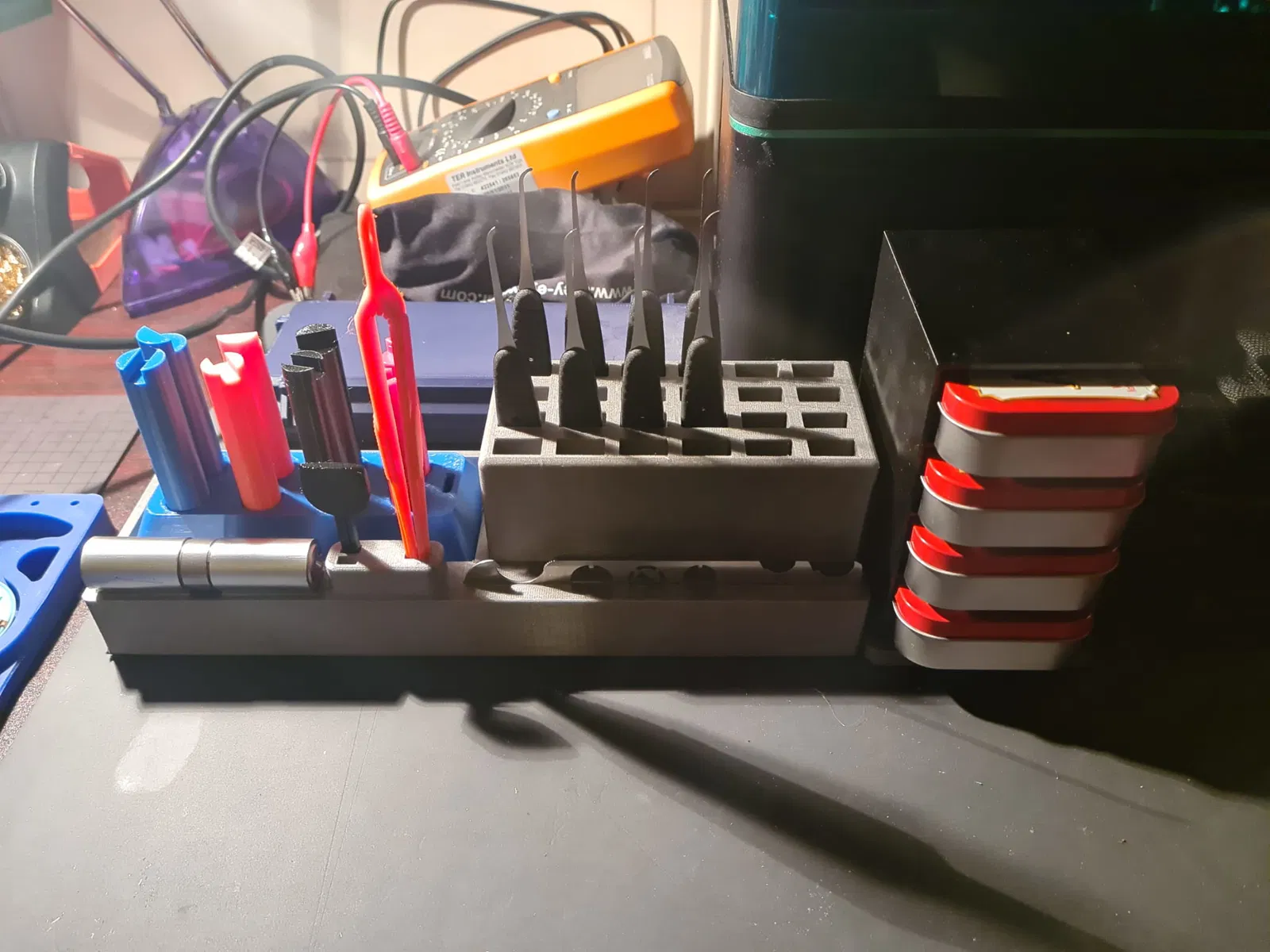 Bạn thậm chí có thể in thêm một cái bệ phụ có thể gắn vào bên phải, để chứa cái hộp Altoids này cho tất cả các bộ phận dự phòng của bạn: https://www.myminifactory.com/object/3d-print-altoids-cabinet-145182