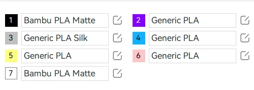 Bản in được thực hiện với chỉ một chiếc AMS. Mình đã thêm một điểm dừng trước màu thứ năm và sắp xếp các màu từ thứ năm đến thứ bảy vào các khe trống, lần lượt là khe thứ 4, 3 và 2 của AMS (có đính kèm ảnh để dễ hình dung).