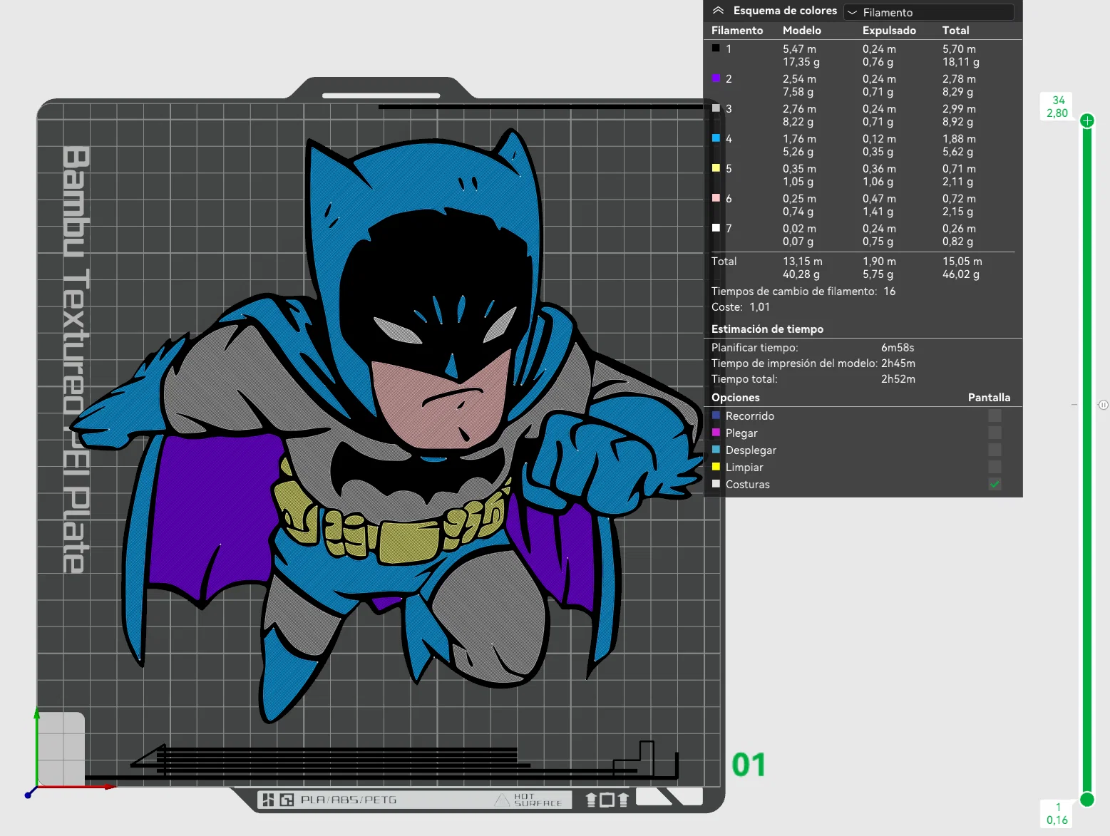 Mô hình Batman in 7 màu chỉ với một AMS. Thiết kế gốc của nghệ sĩ Derek Laufman. Người dùng chia sẻ cách sắp xếp màu sắc để in hiệu quả, có hướng dẫn và hình ảnh minh họa chi tiết.