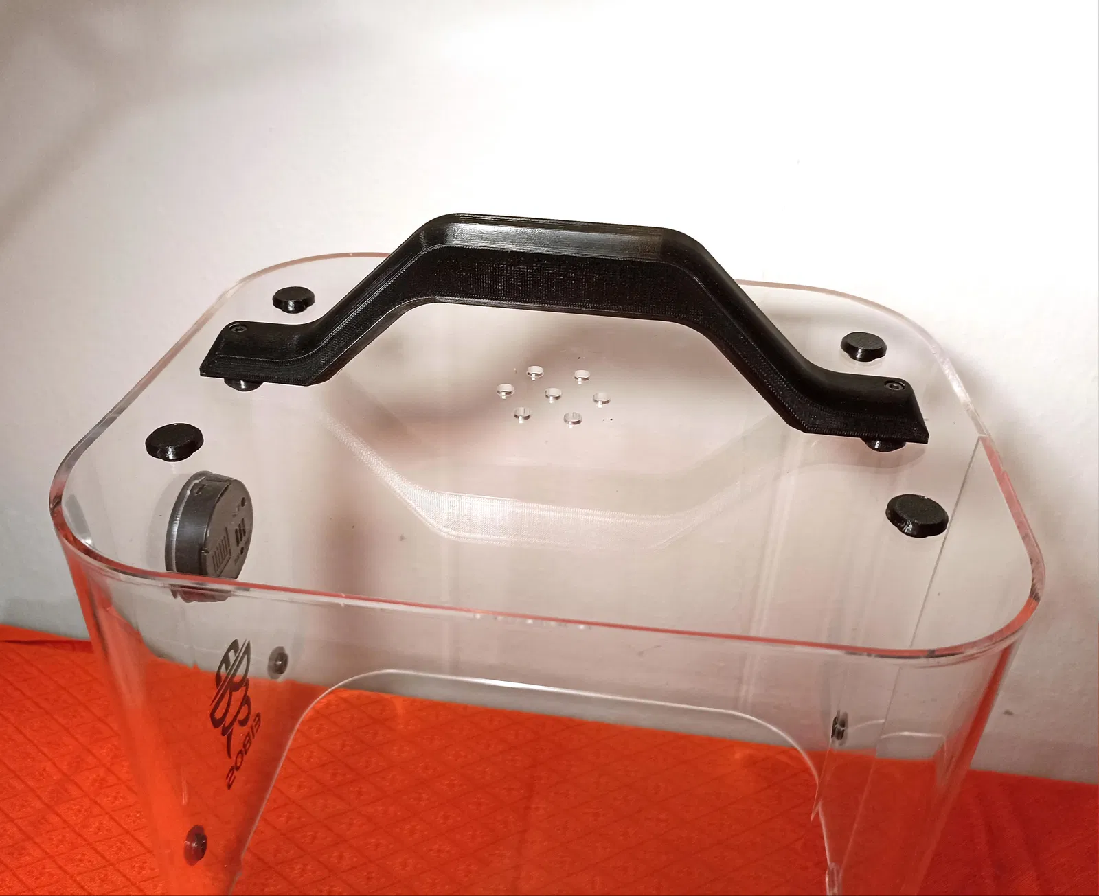 Tay nắm cho nắp máy sấy EIBOS Cyclopes, giúp thao tác dễ dàng và giữ cho nắp mica sạch vân tay. Lắp bằng vít M3 và giữ nguyên cao su zin. In nghiêng để đạt độ bền tốt nhất.