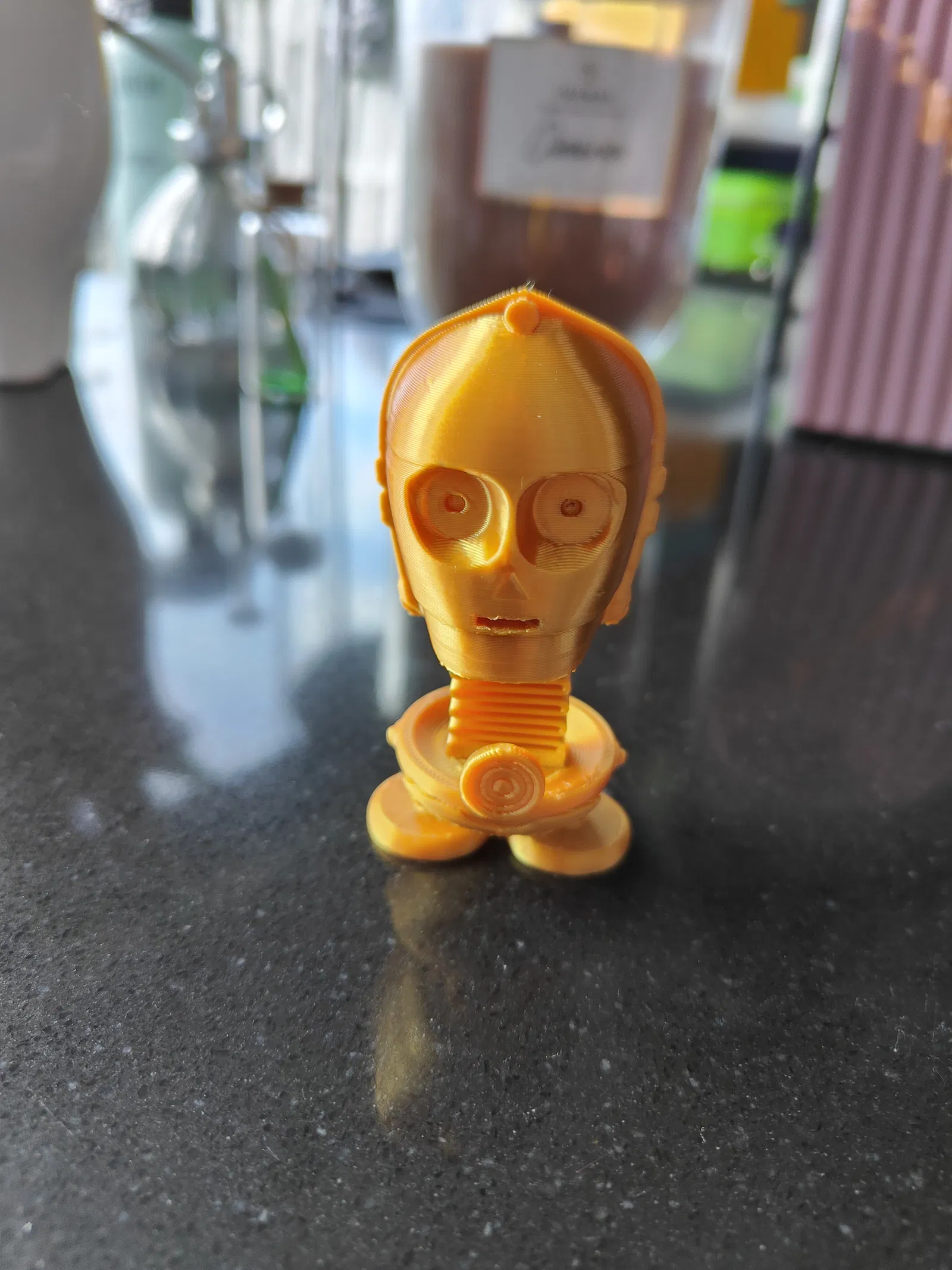 Tui là C-3PO, chuyên gia về quan hệ người/cyborg. Còn bạn là ai? Xin giới thiệu thành viên đầu tiên của dòng springie Star Wars, C3PO springie. A fun and awesome little bobble head of the iconic, and melodramatic Star Wars droid. 27-03-2023: Đã cập nhật lò xo để cứng cáp hơn. Lò xo ban đầu không đủ khỏe để giữ đầu nh nh lên trong thời gian dài. Bạn sẽ cần in lại phần đầu và phần đáy vì các điểm kết nối cho lò xo cũng đã được sửa đổi. Có thể in nhiều màu. Lò xo sử dụng được thiết kế bởi 3D Printy (Parametric Bobblehead Springs) Cần support cho phần đầu và phần đáy. In phần đầu với 10% infill, nếu không đầu sẽ bị nặng quá. _Tất cả thiết kế của The Crafty Maker đều được bảo vệ theo Luật Bản quyền. Khi tải xuống, BẠN KHÔNG CÓ QUYỀN bán bất kỳ tệp kỹ thuật số nào hoặc bản sao nào từ các tệp đó. Nếu bạn muốn giấy phép thương mại để HỢP PHÁP BÁN bản in 3D, bạn sẽ cần đăng ký The Crafty Seller Patreon._