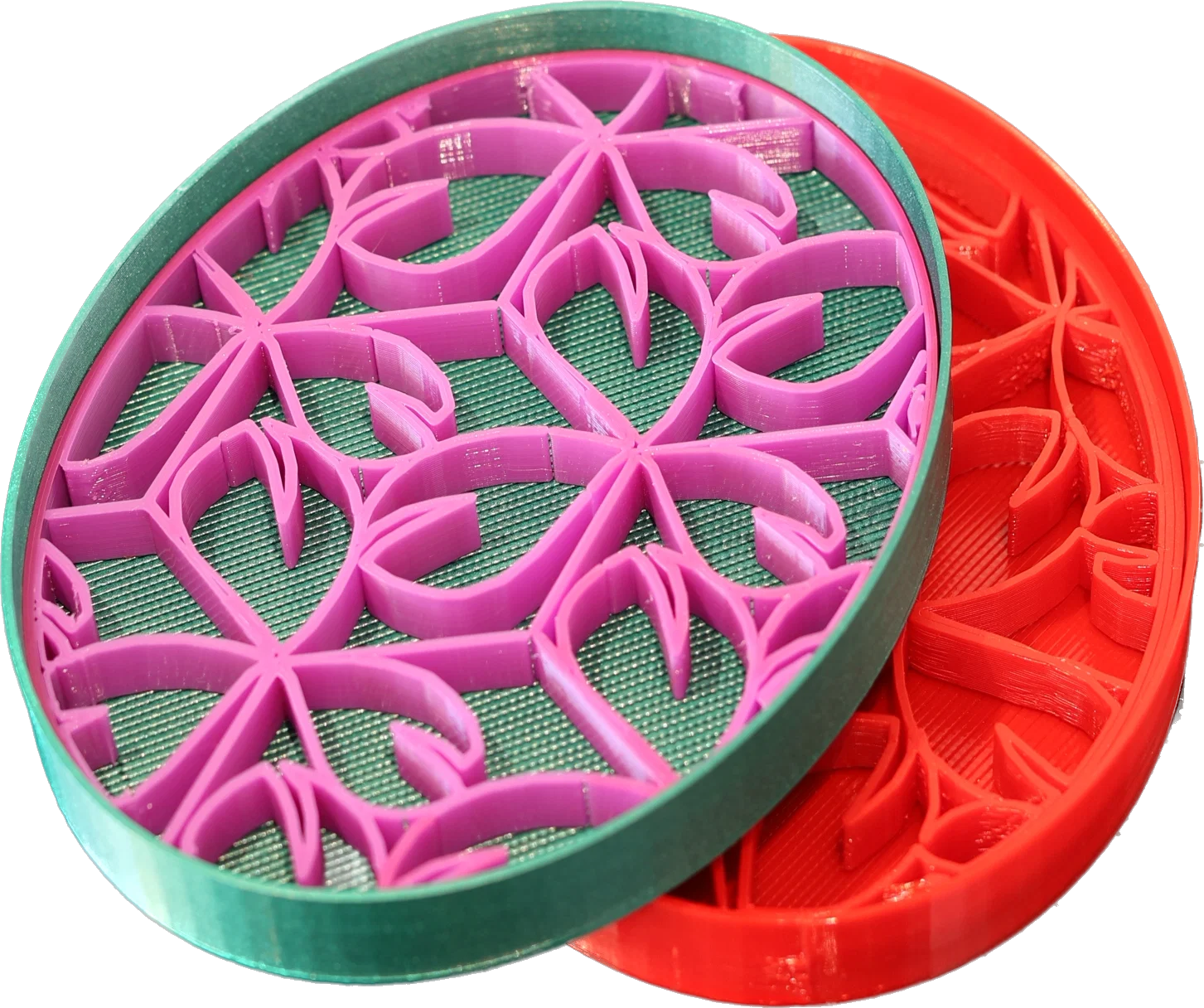 Cái khuôn đựng xà bông này được làm với các kiểu in lưới (infill) tùy chỉnh cho Tiled Infill trong Cura, kèm theo vài mẫu có sẵn trong file zip.
