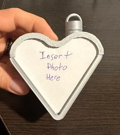 Một chiếc hộp hình trái tim có thể đeo, để giữ những người thân yêu của bạn luôn gần gũi. Đơn giản là đổ đầy trái tim bằng bất cứ thứ gì bạn muốn và gắn nắp vòng bằng keo CA, hàn nhựa hoặc bất cứ thứ gì bạn thích nhất để cố định các bộ phận lại với nhau vĩnh viễn. Trái tim có chỗ để đặt ảnh ở mặt trước, chỉ cần căn chỉnh kích thước ảnh rồi lắp khung trên cùng bằng keo CA hoặc tùy thích.