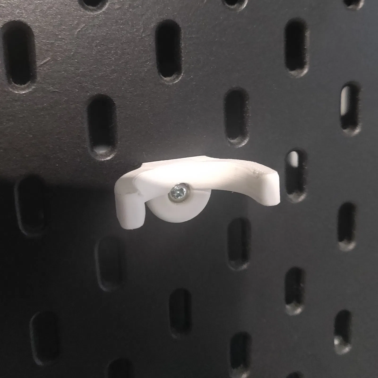 Nó dễ dàng trượt vào từ phía trước, phần bọc cao su trên tua vít tạo ra một chút lực cản. Tốt cho việc sử dụng cố định, nhưng có lẽ tôi sẽ không tin tưởng nó nếu tôi di chuyển cái Skadis, nó có thể bị bung ra.