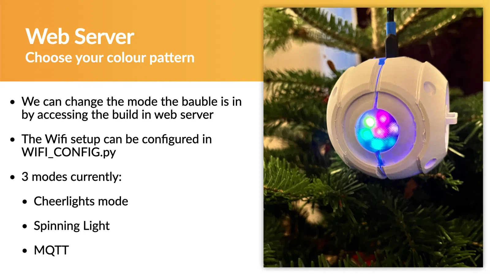 rgb.py- thư viện trợ giúp RGBpattern.py- chứa mã chocheerlight_bauble.pycheerlight_bauble.py- mã webserver chínhindex.html- mẫu trang webheader.html- mẫu tiêu đề trang webfooter.html- mẫu chân trang web