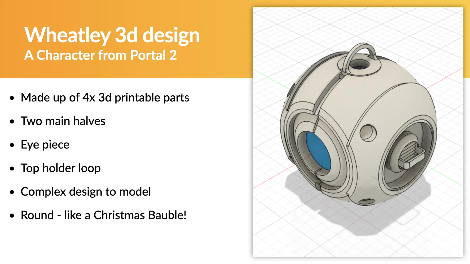 Thêm một quả cầu Giáng sinh dựa trên vi điều khiển vào cây thông Noel của bạn. Hướng dẫn này bao gồm thiết kế 3D Wheatley, điện tử và mã MicroPython để tạo ra một vật trang trí độc đáo, lấy cảm hứng từ Cheerlights và nhân vật Portal 2.