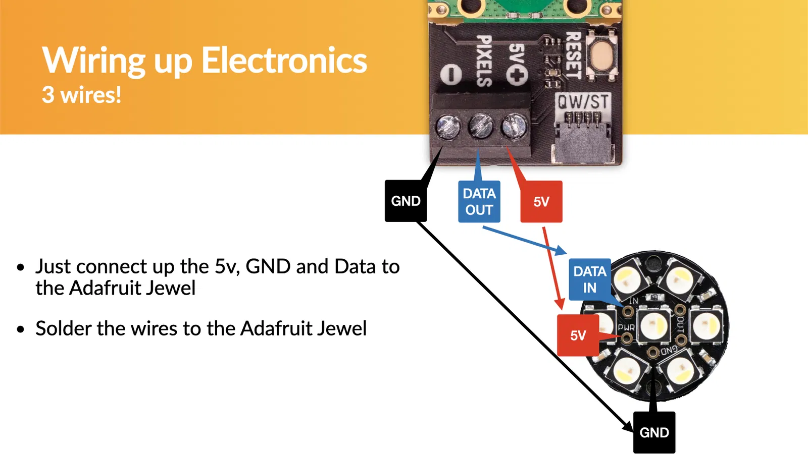 - Adafruit Neopixel Jewel (hoặc tương thích), hãy chú ý đến thứ tự RGB hoặc RGBW, và RGB