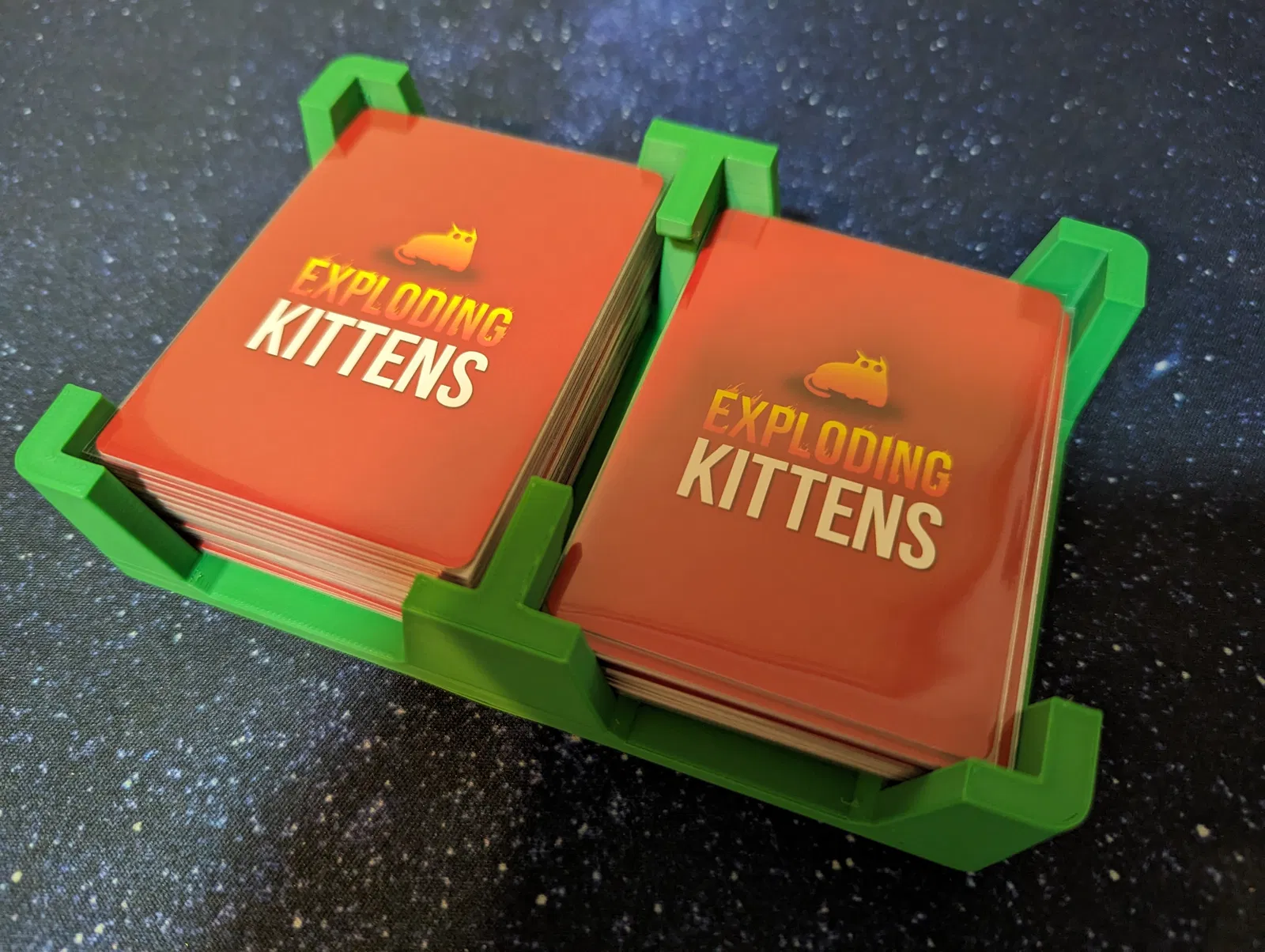 Hộp đựng cho phiên bản gốc của Exploding Kittens (https://explodingkittens.com/), cũng có thể dùng làm khay chia bài/bài bỏ trong khi chơi game.